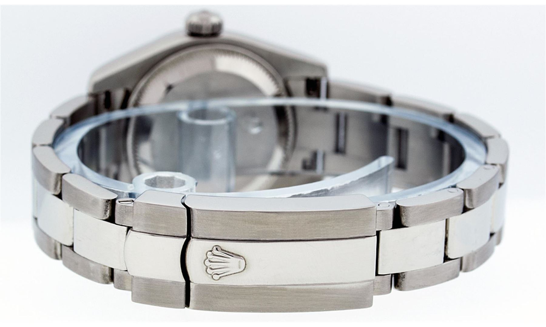 One Ladies Quickset Stainless Steel Rolex Datejust Polished Bright with Satin Finish, Serviced & Electronically Tested, Stainless Steel Case: 26mm, Stainless Steel Crown, Bezel: Stainless Steel Smooth Bezel. Custom Crystal: New Scratch Resistant Sapphire Cyclops Lens. Custom Hands: New Luminescent Hands. Movement: Automatic Winding Movement Caliber 2235. Dial: Salmon Roman Dial With Square Track, Color: G to H, Clarity: VS. Date Window: 3 O'Clock Position Date Display, Model: 179160 Quickset Datejust. Condition: G-6 Extra Fine. Bracelet: Stainless Steel Oyster Band. Bright Polish & Satin Finish. 6.0 Inch Length, Adjustable. Standard Clasp, With Rolex Logo. This Watch Has Been Serviced Time Tested And Is In Excellent Condition It Is Free Of All Scratches And Dents. This Watch Comes With A Rolex Box.