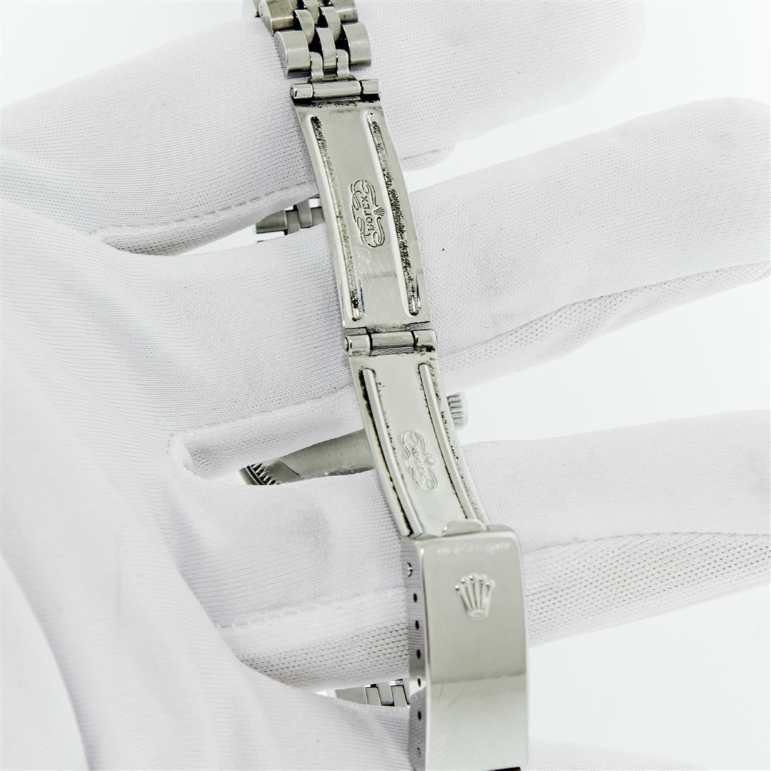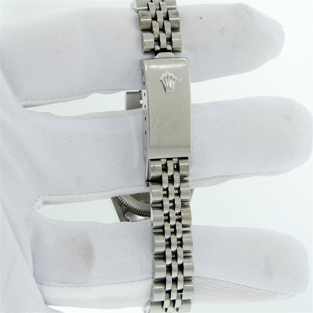 One Quickset Pre Owned Ladies Stainless Steel Rolex Datejust Polished Bright with Satin Finish, Serviced & Electronically Tested, Rolex Stainless Steel Case: 26mm, Rolex Stainless Steel Crown, Rolex Bezel: White Gold Fluted Bezel, Custom Crystal: New Sapphire With Date Window. Custom Hands: New Luminescent Hands. Rolex Movement: Automatic Winding Movement. Rolex Dial: Salmon Roman, Date Window: 3 O'Clock Position Date Display, Model: Quickset 2230 Datejust. Condition: G-6 Extra Fine. Rolex Bracelet: Stainless Steel Jubilee Band. Bright Polish & Satin Finish. 6.0 Inch Length, Adjustable. Standard Clasp, With Rolex Logo. This Watch Has Been Serviced Time Tested And Is In Excellent Condition It Is Free Of All Scratches And Dents.