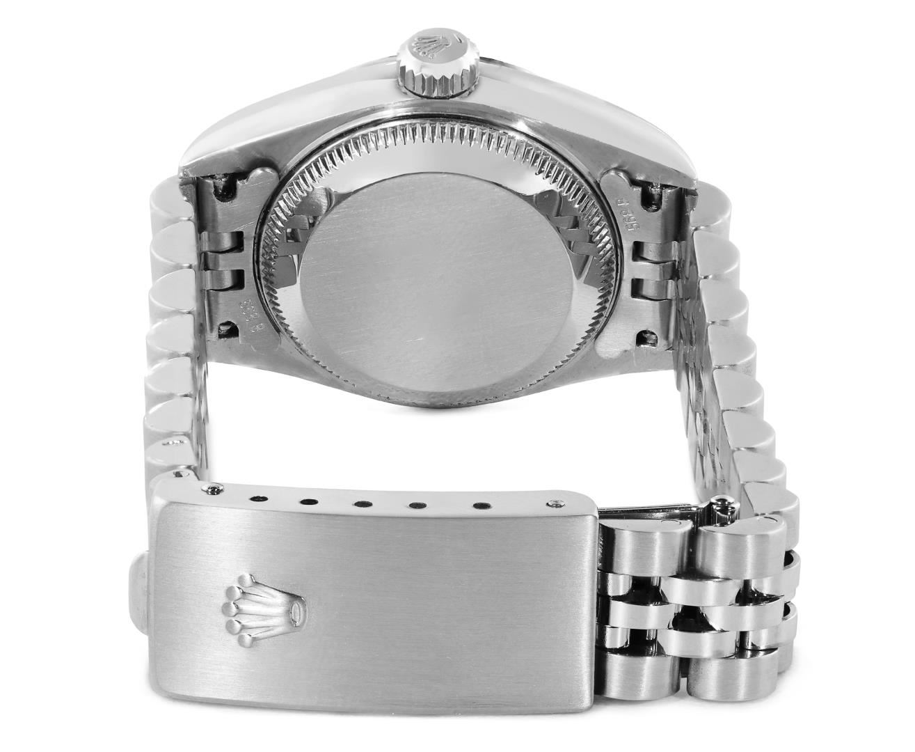 One Rolex Ladies Pre Owned Quickset Stainless Steel Datejust Wristwatch Polished Bright with Satin Finish, Serviced And Electronically Tested, Stainless Steel Case: 26mm, Stainless Steel Crown, Rolex Bezel: 18K White Gold Fluted Bezel. Crystal: Sapphire With Magnified Date Window. Hands: Solid Hands. Rolex Movement: 2235 Automatic Winding Movement. Rolex Dial: Factory Silver With Roman Hour Markers, and Square Track. Date Window: 3 O'Clock Position Date Display, Model: Quickset Datejust. Condition: G-6 Extra Fine. Rolex Bracelet: Stainless Steel Jubilee Band. Bright Polish And Satin Finish. 6.0 Inch Length, Adjustable. Standard Clasp, With Rolex Logo. This Watch Has Been Serviced Time Tested And Is In Excellent Condition. It Is Free Of All Scratches And Dents.
