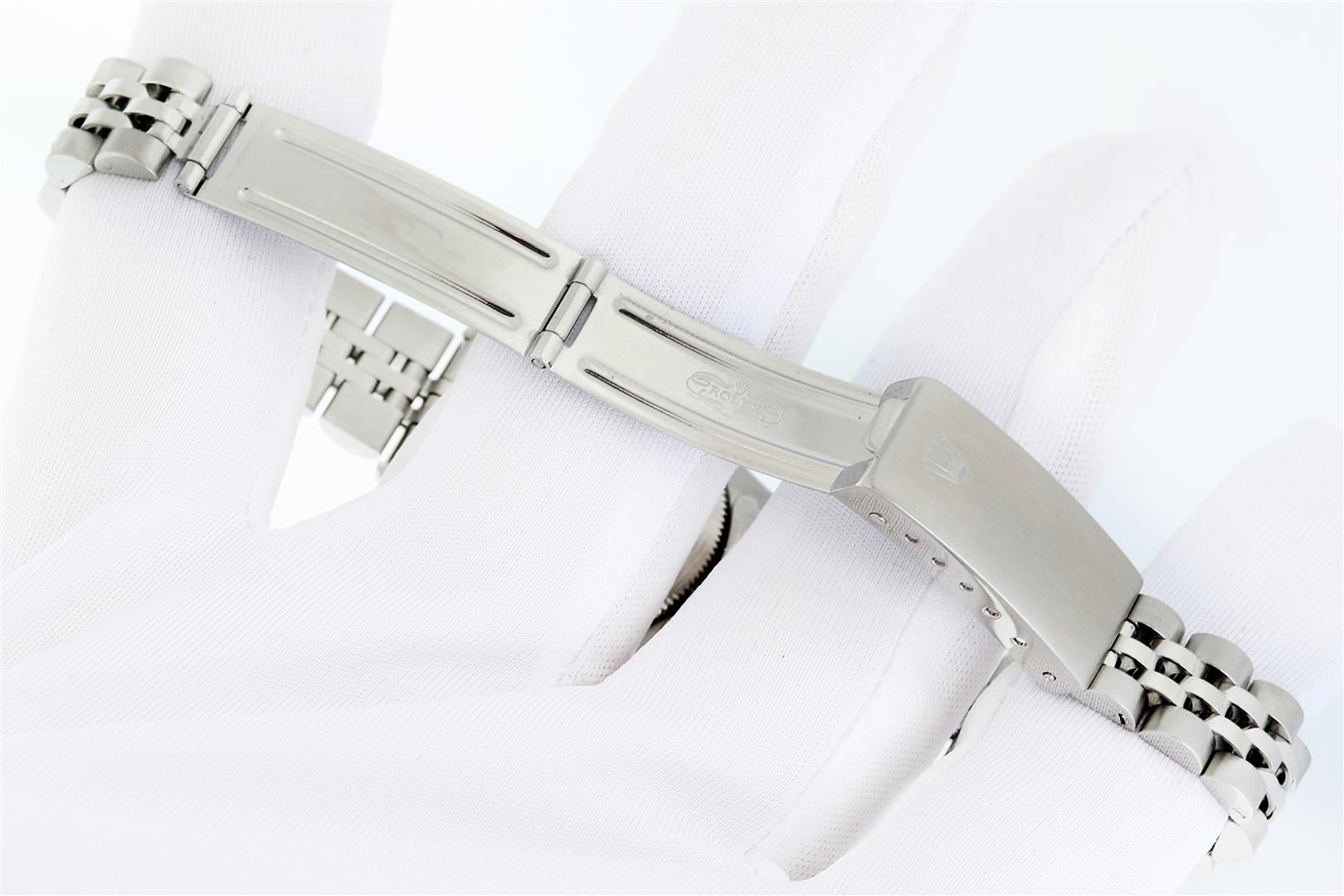 One Ladies Pre Owned Stainless Steel Rolex Date Polished Bright with Satin Finish, Serviced & Electronically Tested, Rolex Stainless Steel Case: 26mm, Rolex Stainless Steel Crown, Rolex Bezel: Rolex White Gold Fluted Bezel, Custom Crystal: New Acrylic Plastic Crystal. Custom Hands: New Luminescent Hands. Rolex Movement: Automatic Winding Movement 1161. Rolex Dial: White Arabic Dial. Date Window: 3 O'Clock Position Date Display, Model: Datejust. Condition: G-6 Extra Fine. Rolex Bracelet: Stainless Steel Jubilee Band. Bright Polish & Satin Finish. 6.00 Inches Length, Adjustable. Standard Clasp, With Rolex Logo. This Watch Has Been Serviced Time Tested And Is In Excellent Condition It Is Free Of All Scratches And Dents.