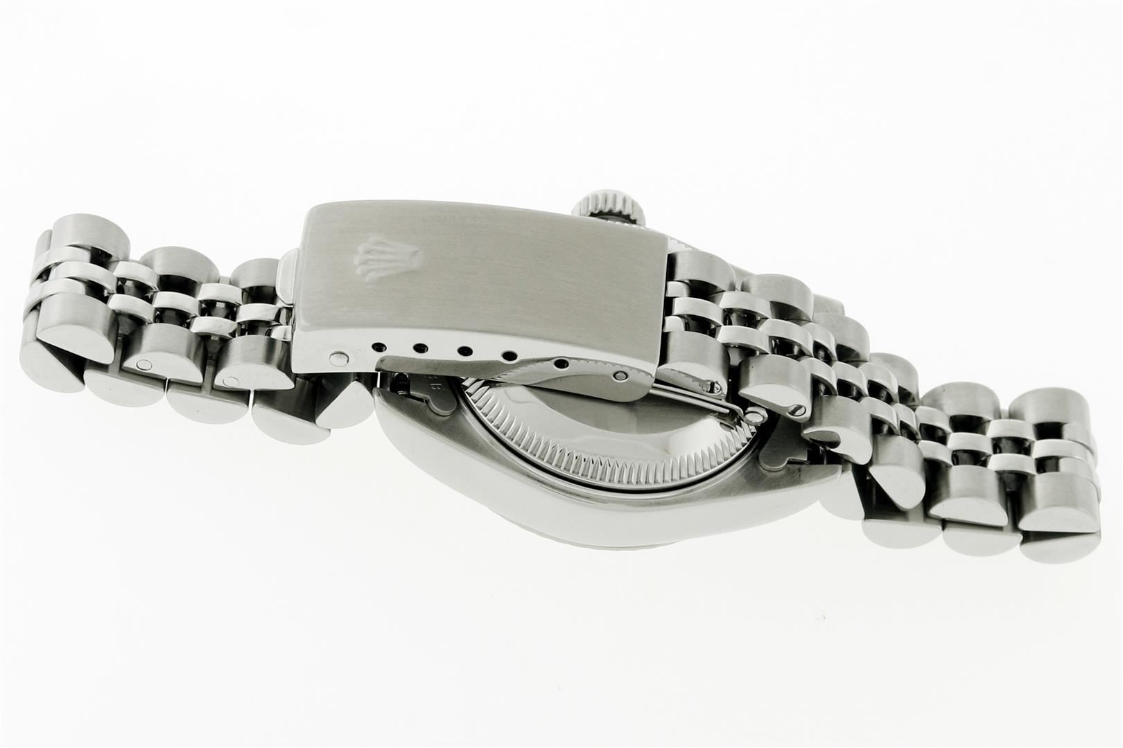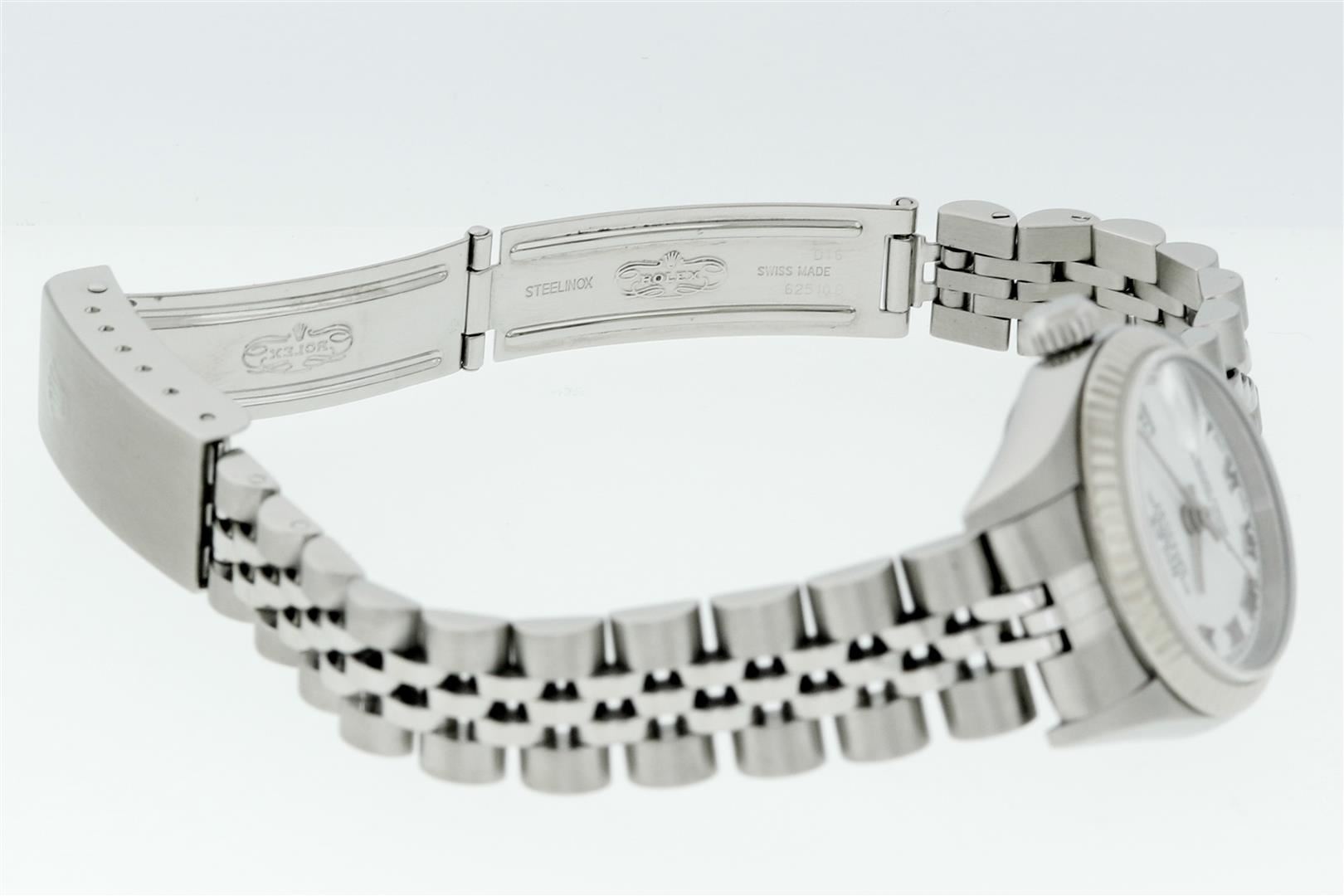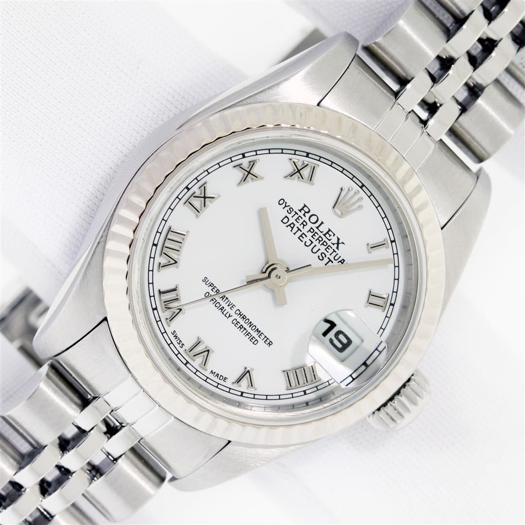 One Quickset Pre Owned Ladies Stainless Steel Rolex Datejust Polished Bright with Satin Finish, Serviced & Electronically Tested, Rolex Stainless Steel Case: 26mm, Rolex Stainless Steel Crown, Rolex Bezel: White Gold Fluted Bezel, Custom Crystal: New Sapphire with Date Window. Custom Hands: New Luminescent Hands. Rolex Movement: Automatic Winding Movement. Rolex Dial: White Roman, Date Window: 3 O'Clock Position Date Display, Model: Quickset 2230 Datejust. Condition: G-6 Extra Fine. Rolex Bracelet: Stainless Steel Jubilee Band. Bright Polish & Satin Finish. 6.0 Inch Length, Adjustable. Standard Clasp, with Rolex Logo. This Watch Has Been Serviced Time Tested And Is In Excellent Condition It Is Free Of All Scratches And Dents.