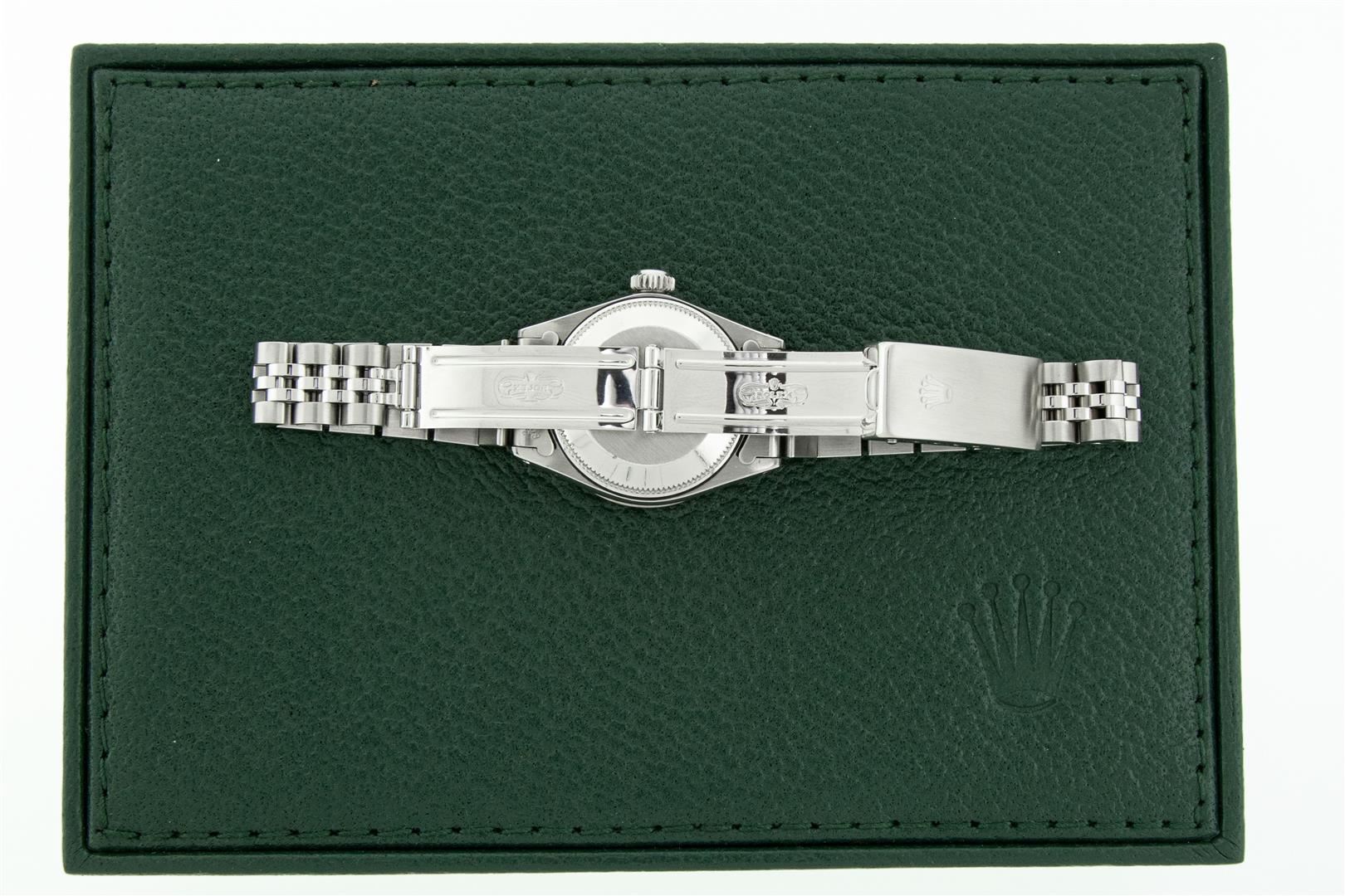 One Ladies Stainless Steel Rolex Datejust Polished Bright with Satin Finish, Serviced & Electronically Tested, Rolex Stainless Steel Case: 26mm, Rolex Stainless Steel Crown, Custom Bezel: New 18K White Gold Emerald Beadset Diamond Bezel, Diamond + Gem Count: 28 Diamonds + 4 Emeralds. Total Weight .70 Carat, Clarity: SI-VS, Color: G to H. Custom Crystal: New Sapphire With Magnified Date Window. Custom Hands: New Luminescent Hands. Rolex Movement: Automatic Winding Movement. Custom Dial: Refinished To Yellow With Custom Added Diamonds, 10 Diamonds in Dial, G To H In Color, Clarity: SI-VS. Date Window: 3 O'clock Position Date Display, Model: Datejust. Condition: G-6 Extra Fine. Rolex Bracelet: Stainless Steel Jubilee Band. Bright Polish & Satin Finish. 6.0 Inch Length, Adjustable. Standard Clasp, With Rolex Logo. This Pre Owned Watch Has Been Serviced Time Tested And Is In Excellent Condition It Is Free Of All Scratches And Dents. This Watch Comes With A Rolex Box.