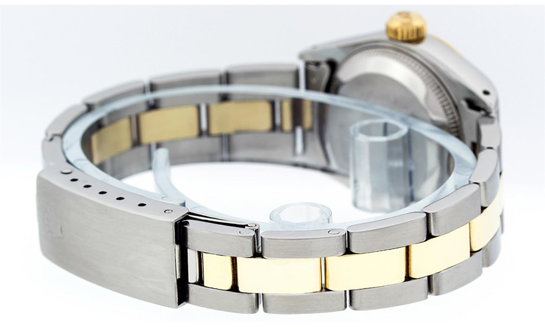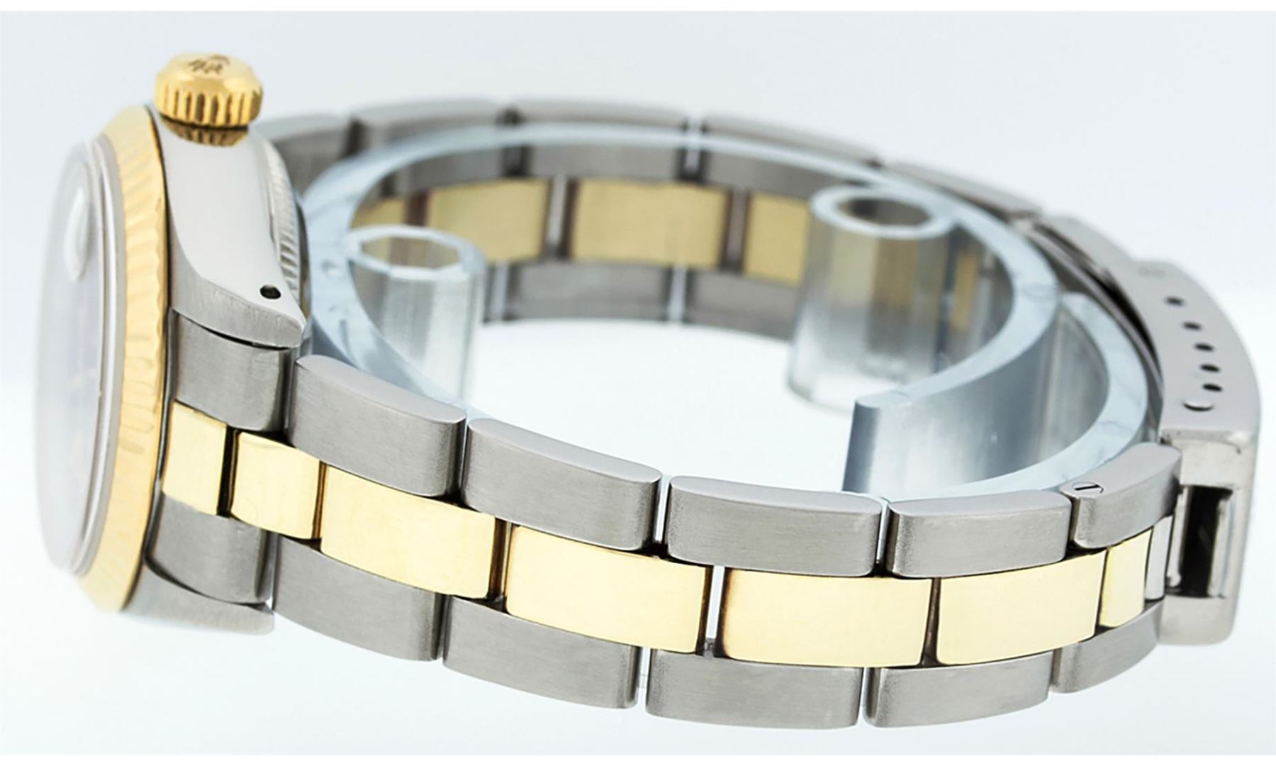 One Ladies Pre Two Tone 14K Yellow Gold & Stainless Steel Rolex Polished, Serviced & Electronically Tested, 14K Yellow Gold & Stainless Steel Case: 26mm, Yellow Gold Crown, Bezel: 14K Yellow Gold Fluted Bezel. Custom Crystal: New Plexiglass With Date Window. Hands: Luminescent Hands. Rolex Movement: Automatic Winding Movement 2030. Custom Dial: Black Index With Dash Track & Lumi Dots. Date Window: 3 O'Clock Position Date Display, Model: Datejust. Condition: G-6 Extra Fine. Bracelet: Two Tone 14K Yellow Gold & Stainless Steel Oyster Band. Bright Polish. 6.0 Inch Length, Adjustable. Standard Clasp, With Rolex Logo. This Watch Has Been Serviced Time Tested And Is In Excellent Condition It Is Free Of All Scratches And Dents.