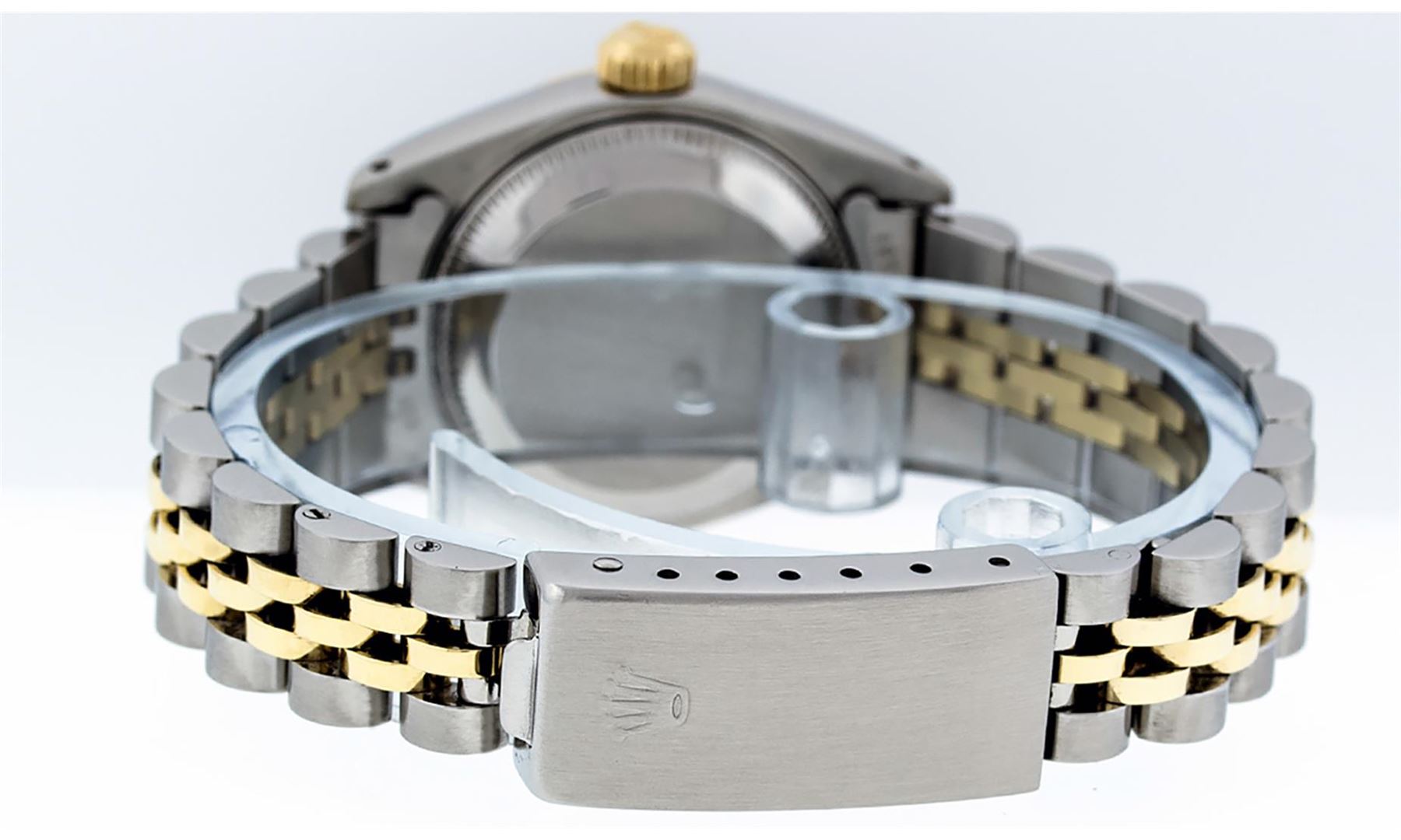 One Ladies Two Tone Rolex Datejust Polished, Serviced & Electronically Tested, Yellow Gold & Stainless Steel Case: 26mm, Yellow Gold Crown, Bezel: Yellow Gold Fluted Bezel. Custom Crystal: New Acrylic Cyclops Lens. Hands: Luminescent Hands. Movement: Auto
