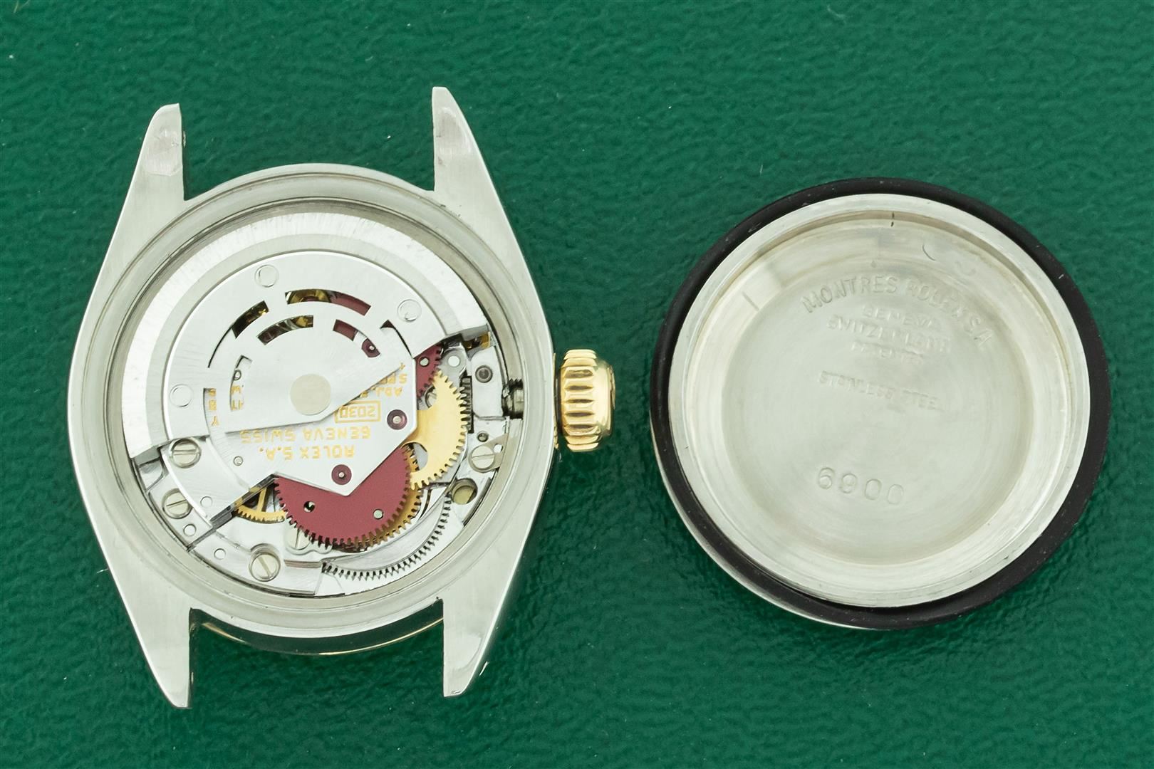 One Ladies Pre Owned Two Tone Rolex Datejust Polished, Serviced & Electronically Tested, Rolex Yellow Gold & Stainless Steel Case: 26mm, Rolex Yellow Gold Crown, Rolex Bezel: Yellow Gold Fluted Bezel. Custom Crystal: New Acrylic Cyclops Lens. Custom Hands: New Yellow Hands. Rolex Movement: Automatic Winding Movement. Custom Dial: Refinish To Green With Added Diamond Hour Markers, Diamond Count: 10 Diamonds, Color: G to H, Clarity: VS2-SI1. Date Window: 3 O'Clock Position Date Display, Model: Datejust. Condition: G-6 Extra Fine. Rolex Bracelet: Two Tone Yellow Gold & Stainless Steel Jubilee Band. Bright Polish. 6.0 Inch Length, Adjustable. Standard Clasp, With Rolex Logo. This Watch Has Been Serviced Time Tested And Is In Excellent Condition It Is Free Of All Scratches And Dents.