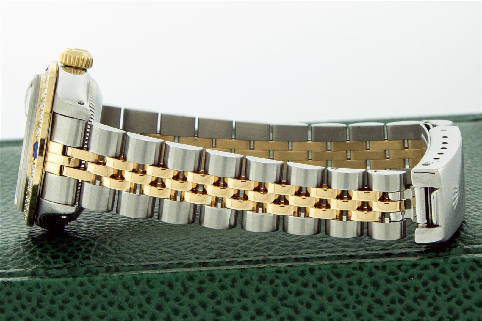 Rolex Ladies Two Tone Silver Diamond and Sapphire Datejust Wristwatch with Rolex Box