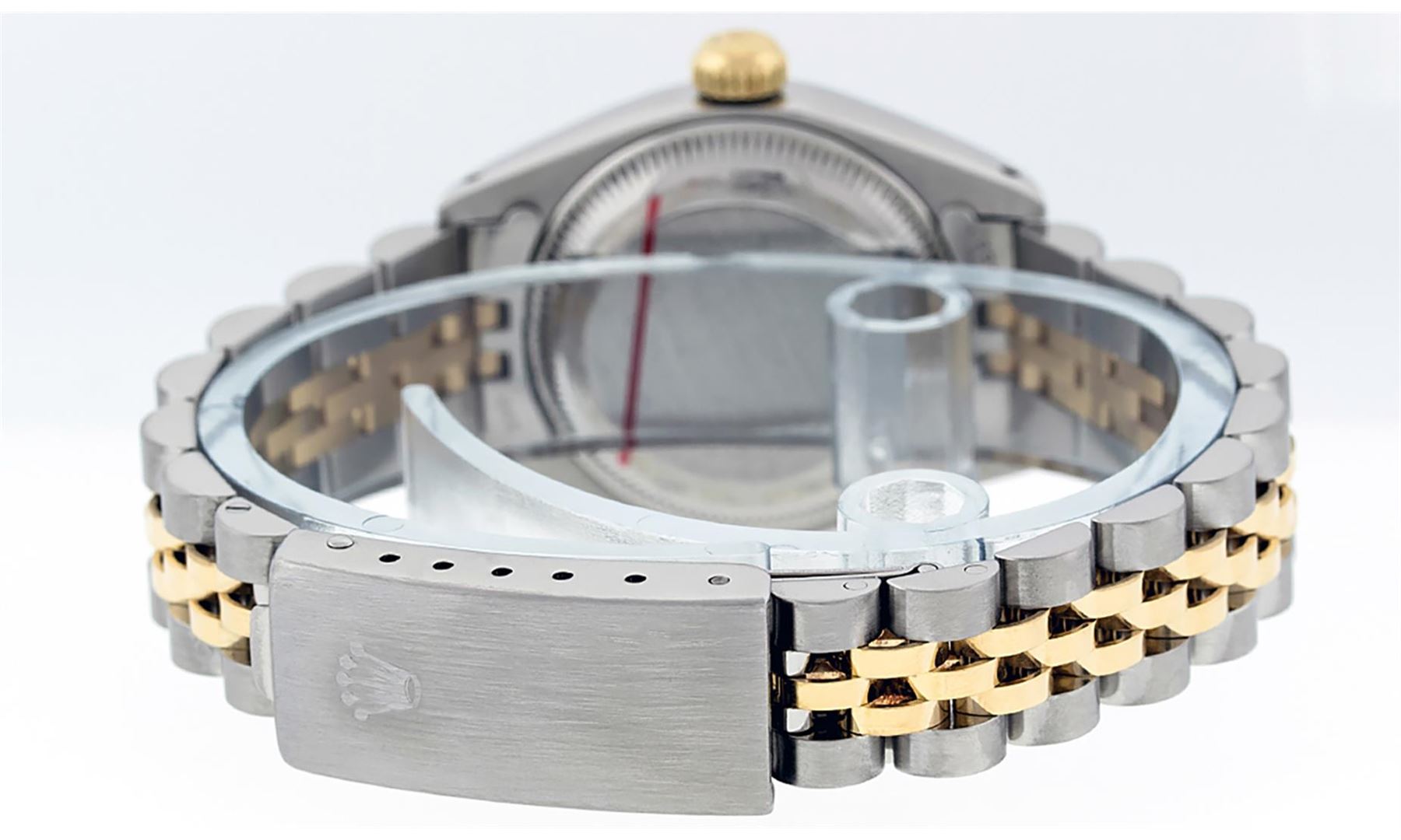 One Ladies Two Tone Rolex Datejust Polished, Serviced & Electronically Tested, Yellow Gold & Stainless Steel Case: 26mm, Yellow Gold Crown, Bezel: Yellow Gold Fluted Bezel. Custom Crystal: New Acrylic Cyclops Lens. Hands: Luminescent Hands. Movement: Auto