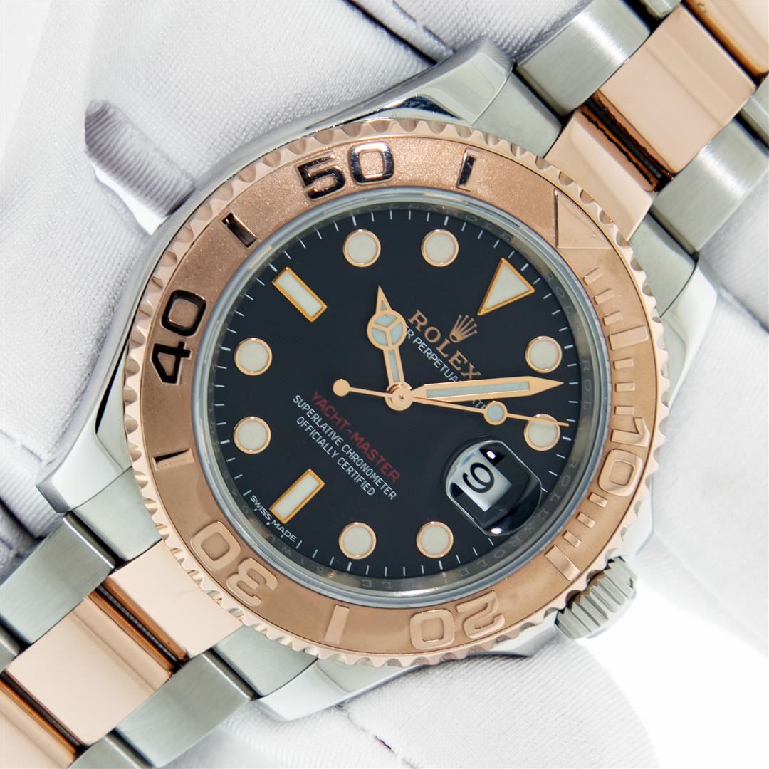 One Men's Rolex 18K Rose Gold And Stainless Steel Yacht-Master Polished And Serviced, This Watch Has Been Serviced & Electronically Tested, Rolex Stainless Steel Case: 40mm, Rolex 18K Rose Gold Crown with Rolex Logo, Rolex Bezel: 18K Rose Gold Rotatable Time-Lapse Bezel. Crystal: Sapphire With Cyclops Lens. Hands: Luminescent Hands. Rolex Movement: Automatic Winding Movement Caliber 3135. Rolex Dial: Black Dial With Luminous Hour Markers. Date Window: 3 O'clock Position Date Display, Model: Yacht-Master 116621. Condition: Excellent. Rolex Bracelet: 18K Rose Gold And Stainless Steel Bracelet. Bright Polish & Satin Finish. 7.0 Inch Length, Adjustable. Flip Lock Clasp with Rolex Logo. This Pre Owned Watch Has Been Serviced Time Tested And Is In Excellent Condition It Is Free Of All Scratches And Dents. This Watch Comes With A Rolex Box And Booklets.