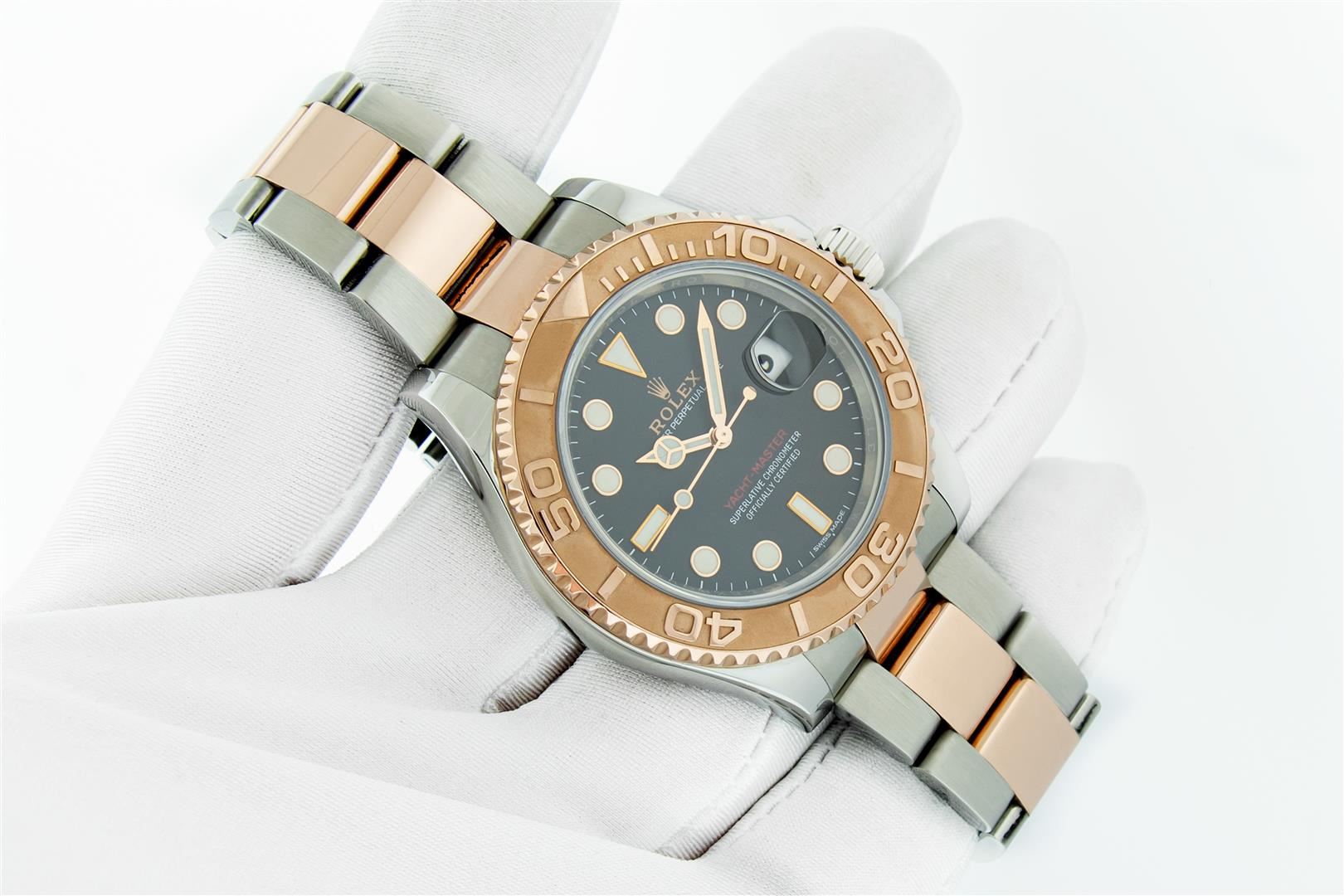 One Men's Rolex 18K Rose Gold And Stainless Steel Yacht-Master Polished And Serviced, This Watch Has Been Serviced & Electronically Tested, Rolex Stainless Steel Case: 40mm, Rolex 18K Rose Gold Crown with Rolex Logo, Rolex Bezel: 18K Rose Gold Rotatable Time-Lapse Bezel. Crystal: Sapphire With Cyclops Lens. Hands: Luminescent Hands. Rolex Movement: Automatic Winding Movement Caliber 3135. Rolex Dial: Black Dial With Luminous Hour Markers. Date Window: 3 O'clock Position Date Display, Model: Yacht-Master 116621. Condition: Excellent. Rolex Bracelet: 18K Rose Gold And Stainless Steel Bracelet. Bright Polish & Satin Finish. 7.0 Inch Length, Adjustable. Flip Lock Clasp with Rolex Logo. This Pre Owned Watch Has Been Serviced Time Tested And Is In Excellent Condition It Is Free Of All Scratches And Dents. This Watch Comes With A Rolex Box And Booklets.
