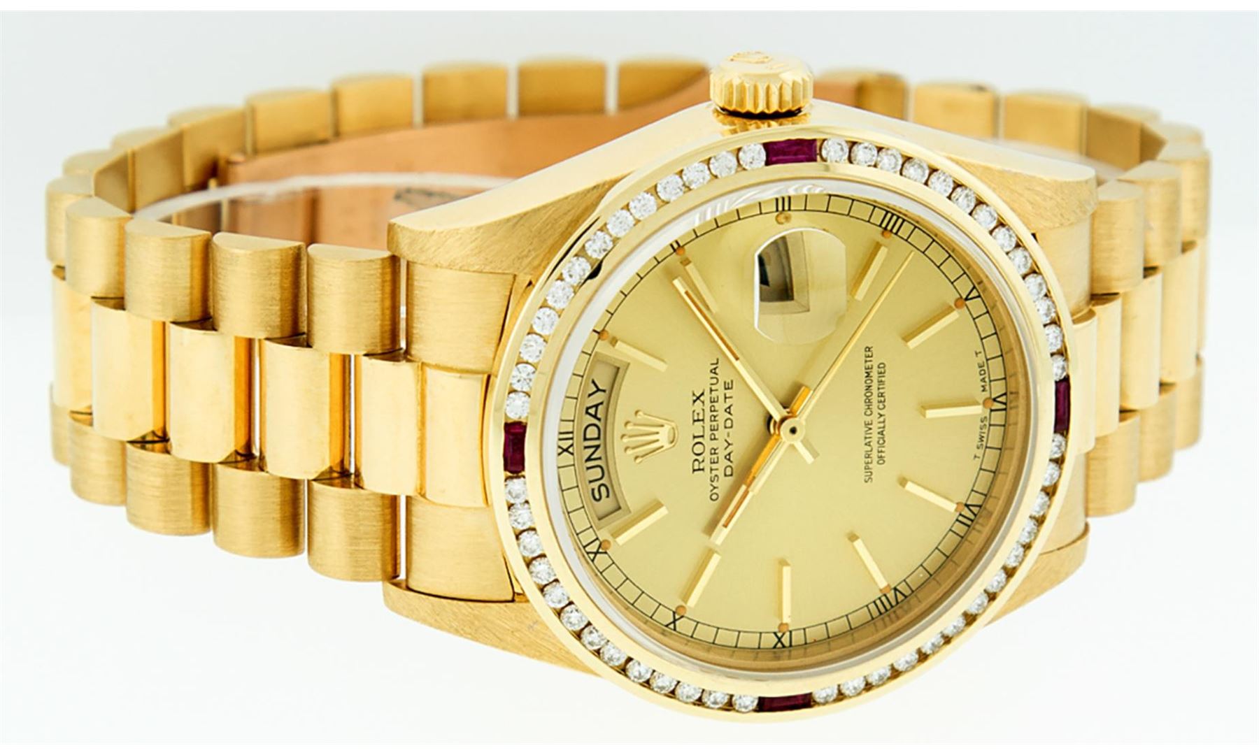 Rolex Men's 18K Yellow Gold Champagne Ruby and Diamond Day Date President Wristwatch