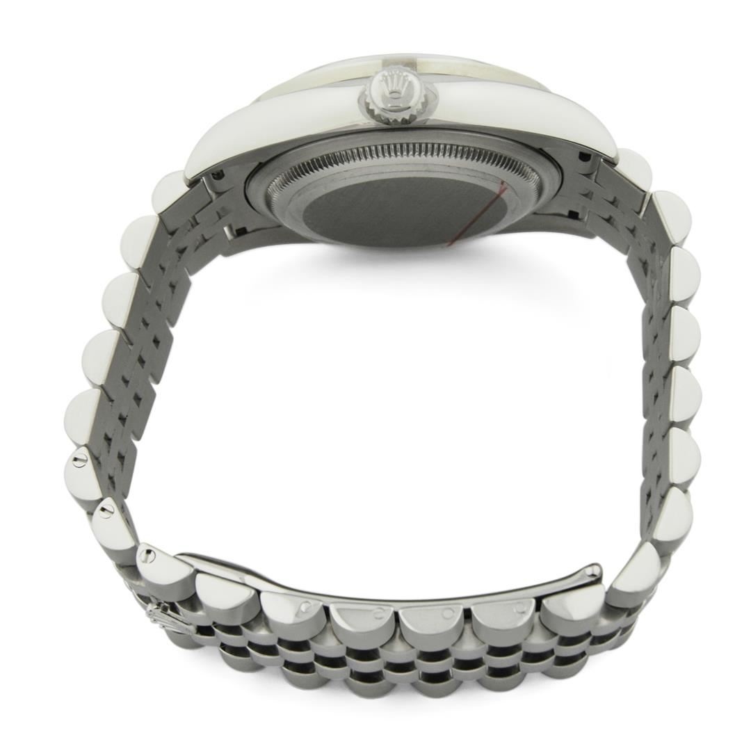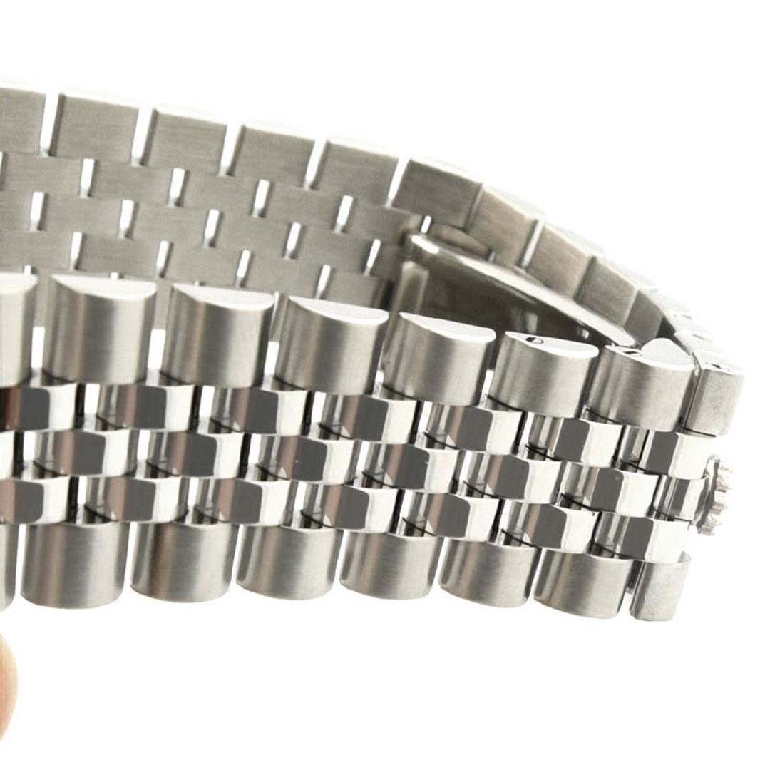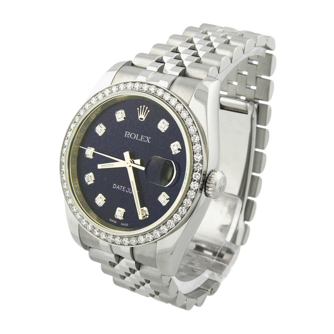 Rolex Datejust Mens 36mm Blue and Grey Diamond Dial Steel Polished & Electronically Tested. Model: Datejust 116234. Case: Stainless Steel. Bezel: Custom made diamond bezel with round brilliant diamonds all set in prong setting. Total Weight 0.85ctw Clarity: VS-SI Color:G-H. Bracelet: Stainless Steel, Little Loose. Dial: Original Blue and Grey 0.10ctw Diamonds. Date Window: 3 O'clock Position date display. Movement: Automatic Winding Movement. Water Resistant: Yes. Case Size: 36mm. Condition: Pre Owned, Watch is free of all Scratches and Dents, Extra Fine G-6.