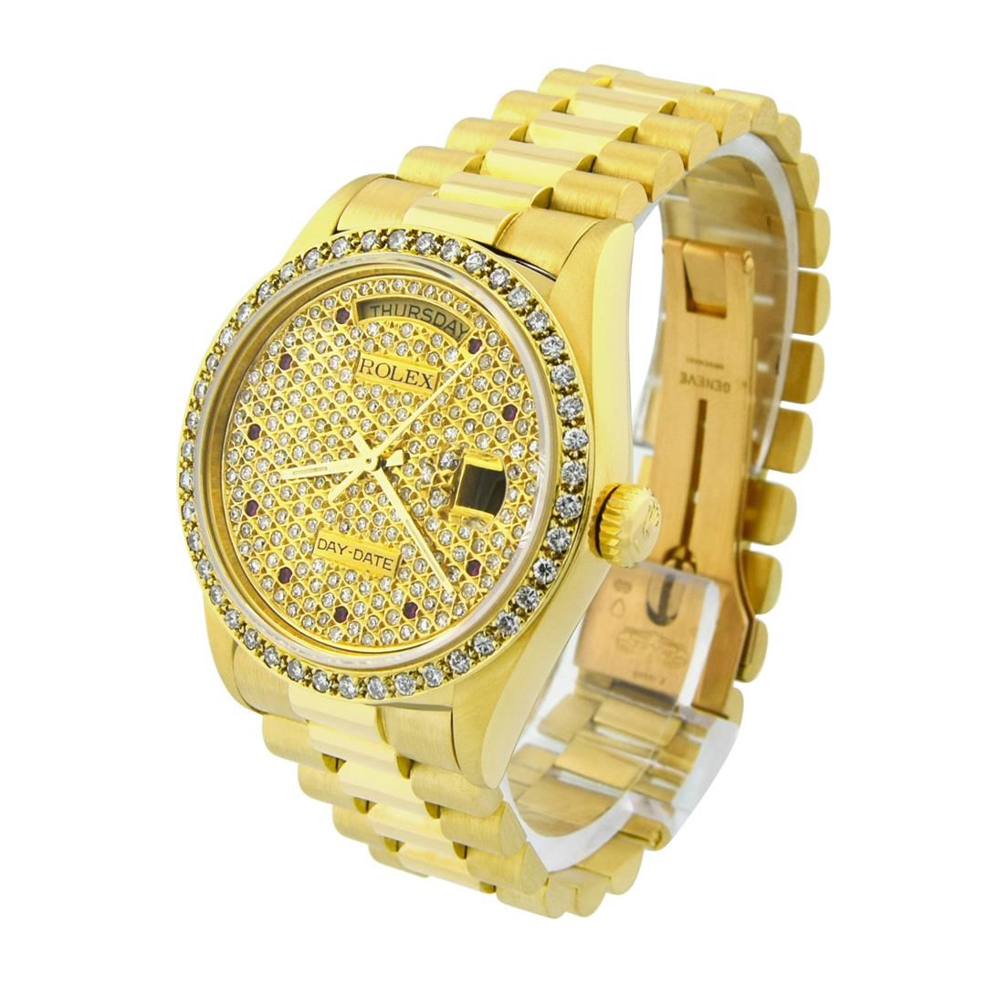 Rolex Men's Day-Date President 18KT Yellow Gold 36mm Custom Diamond Dial Watch