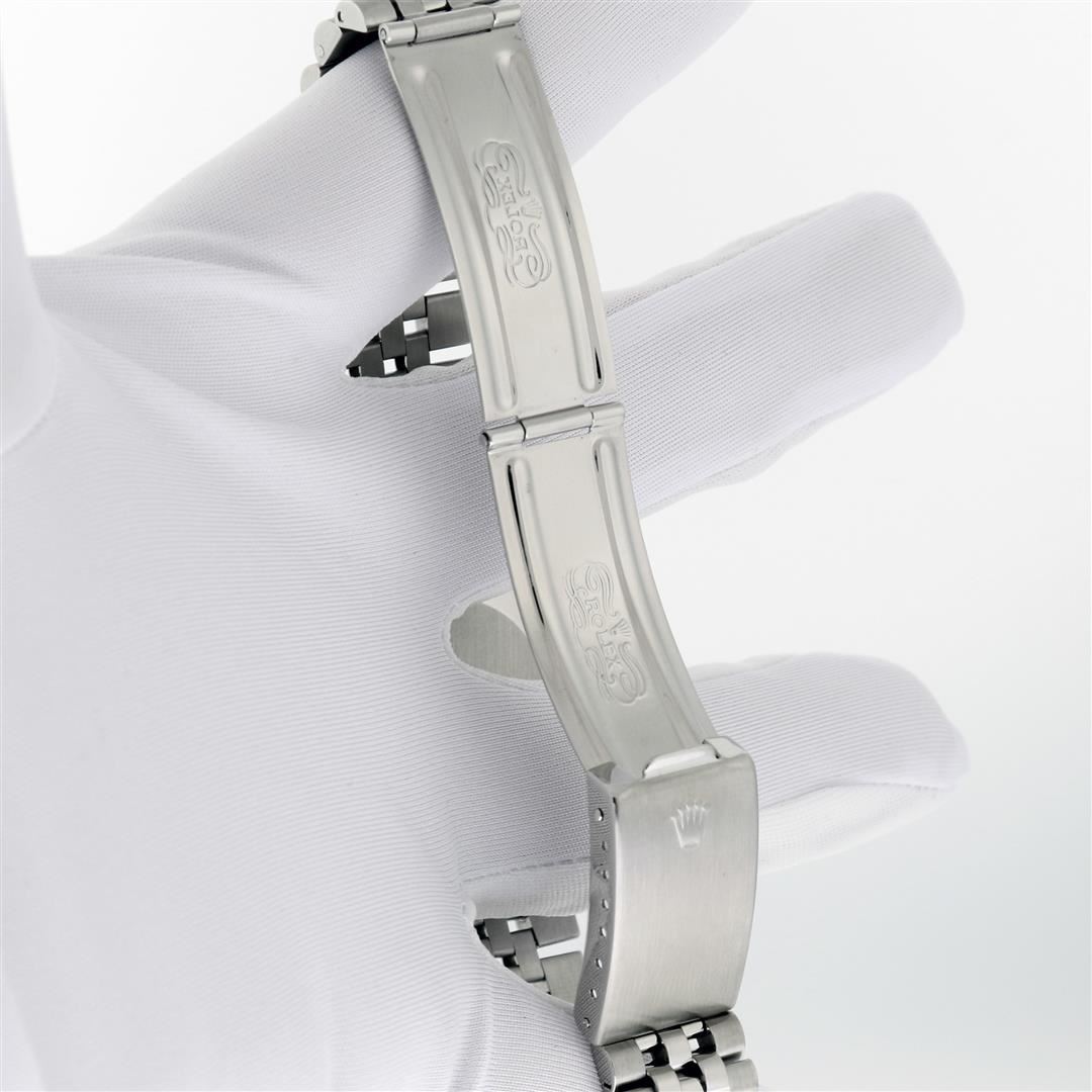 One Men's Rolex Datejust Polished Bright with Satin Finish, This Watch Has Been Serviced & Electronically Tested, Rolex Stainless Steel Case: 36mm, Rolex Stainless Steel Crown, Custom Bezel: New 18K White Gold Sapphire Beadset Diamond Bezel, Diamond + Gem Count: 36 Diamonds + 4 Sapphires, Clarity: SI-VS, Color: G to H. Custom Crystal: New Sapphire with Date Window. Custom Hands: New Luminescent Hands. Rolex Movement: Automatic Winding Movement. Rolex Dial: Silver Index Dial. Date Window: 3 O'Clock Position Date Display, Quickset, Model: Datejust, Condition: G-6 Extra Fine. Rolex Bracelet: Stainless Steel Jubilee Band. Bracelet: 7.0 Inch Length, Adjustable. Standard Clasp, with Rolex Logo. This Pre Owned Watch Has Been Serviced Time Tested And Is In Excellent Condition It Is Free Of All Scratches And Dents.