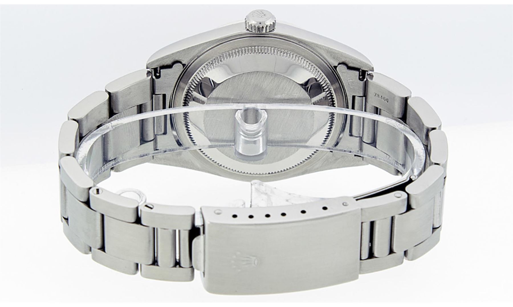 One Men's Rolex Quickset Stainless Steel Datejust Polished Bright with Satin Finish, Serviced & Electronically Tested, Rolex Stainless Steel Case: 36mm, Rolex Stainless Steel Crown, Rolex Bezel: 14K White Gold Fluted Bezel. Crystal: Sapphire With Magnified Date Window. Custom Hands: New Solid Hands. Rolex Movement: Automatic Winding Movement Caliber 3135. Custom Dial: Refinished To Gray With Index Hour Markers Dash Track And Lumi Dots. Date Window: 3 O'Clock Position Date Display, Quickset, Model: Quickset Datejust. Condition: G-6 Extra Fine. Rolex Bracelet: Stainless Steel Oyster Band. Bright Polish & Satin Finish. 7.0 Inch Length, Adjustable. Standard Clasp, With Rolex Logo. This Pre Owned Watch Has Been Serviced Time Tested And Is In Excellent Condition It Is Free Of All Scratches And Dents.
