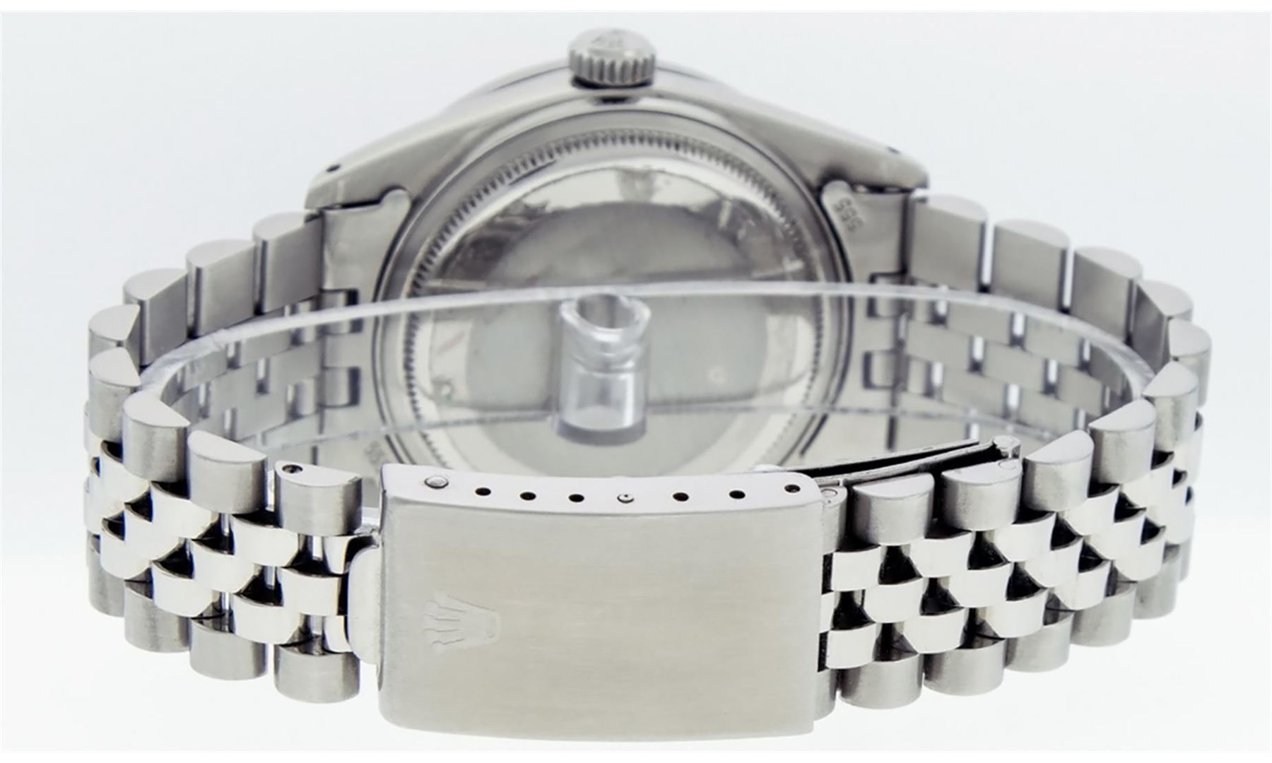 One Men's Rolex Stainless Steel Datejust Polished Bright with Satin Finish, This Watch Has Been Serviced & Electronically Tested, Stainless Steel Case: 36mm, Stainless Steel Crown, Custom Bezel: New Stainless Steel Beadset Diamond Bezel, Diamond Count: 54