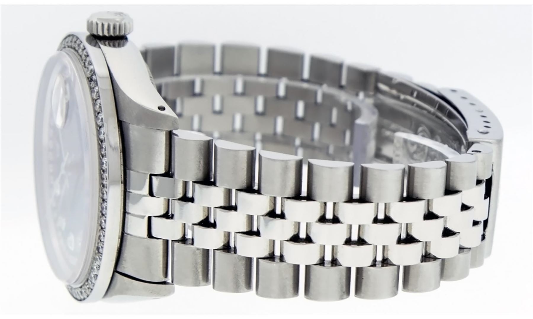 One Men's Rolex Stainless Steel Datejust Polished Bright with Satin Finish, This Watch Has Been Serviced & Electronically Tested, Stainless Steel Case: 36mm, Stainless Steel Crown, Custom Bezel: New Stainless Steel Beadset Diamond Bezel, Diamond Count: 54 Diamonds In Bezel, Total Weight 1.00 Carat, Clarity: SI-VS, Color: G to H. Custom Crystal: New Synthetic Sapphire Cyclops Lens. Custom Hands: New Luminescent Hands. Movement: Automatic Winding Movement. Custom Dial: Red String Diamond Dial, Diamond Count: 58 Diamonds In Dial, Color: G to H, Clarity: VS2-SI1. Date Window: 3 O'clock Position Date Display, Quickset, Model: Datejust. Condition: G-6 Extra Fine. Bracelet: Stainless Steel Jubilee Band. Bright Polish & Satin Finish. 7.0 Inch Length, Adjustable. Standard Clasp, With Rolex Logo. This Watch Has Been Serviced Time Tested And Is In Excellent Condition It Is Free Of All Scratches And Dents.