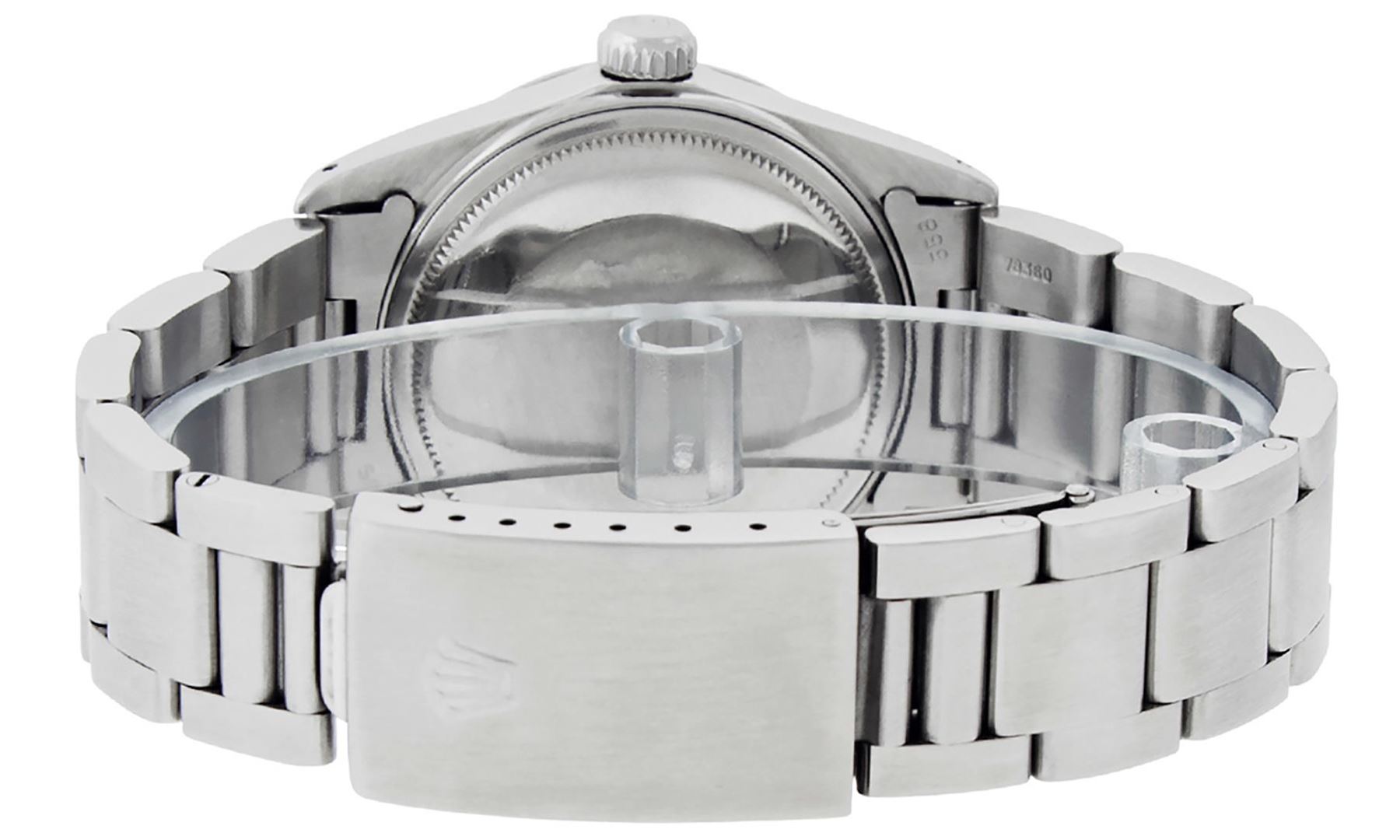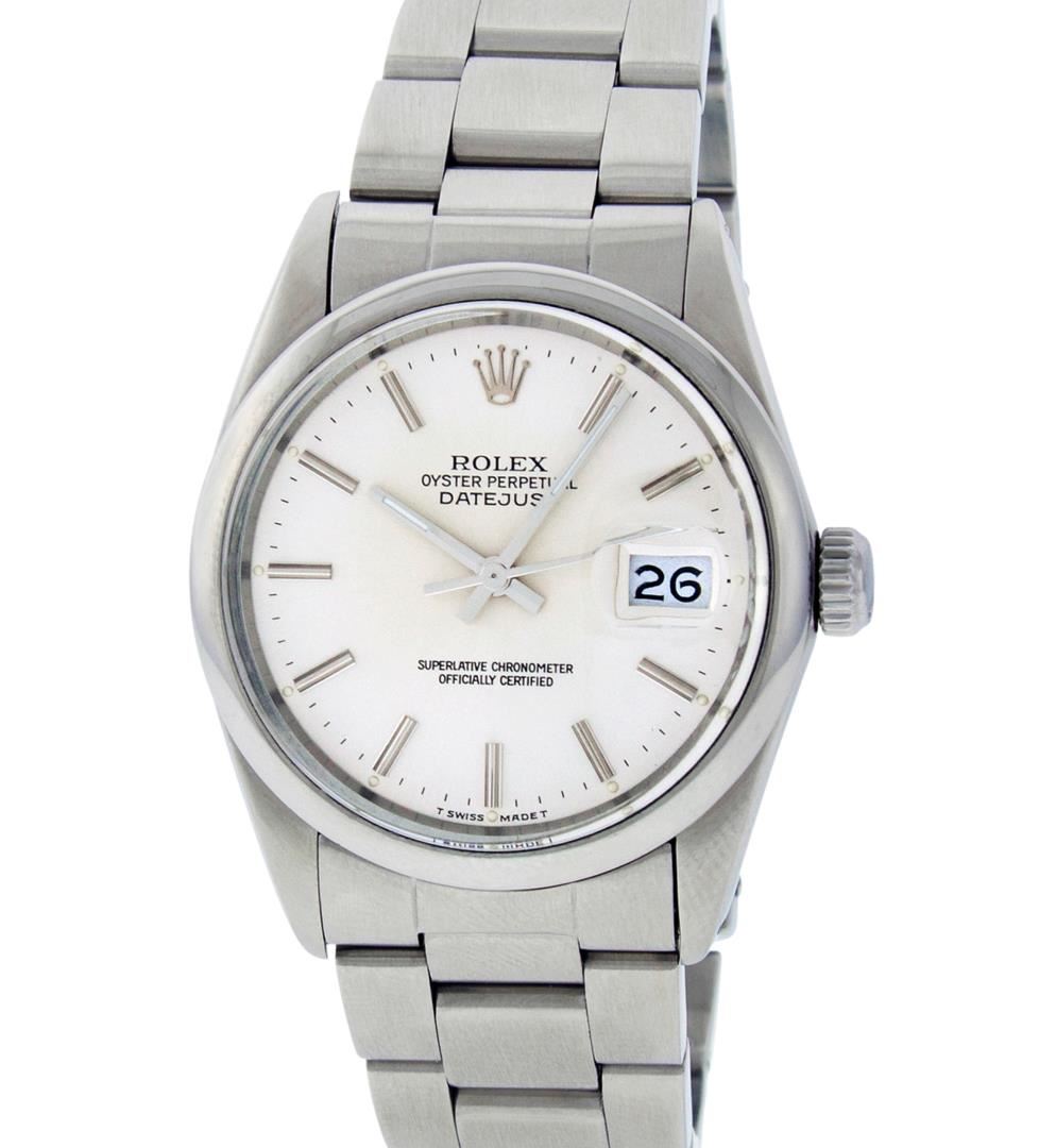 One Men's Rolex Quickset Stainless Steel Datejust Polished Bright with Satin Finish, Serviced & Electronically Tested, Rolex Stainless Steel Case: 36mm, Rolex Stainless Steel Crown, Rolex Bezel: Stainless Steel Smooth Bezel. Crystal: Sapphire With Magnified Date Window. Custom Hands: New Luminescent Hands. Rolex Movement: Automatic Winding Movement Caliber 3135. Rolex Dial: Silver Dial With Index Hour Markers Dash Track And Lumi Dots. Date Window: 3 O'Clock Position Date Display, Quickset, Model: Quickset Datejust. Condition: G-6 Extra Fine. Rolex Bracelet: Stainless Steel Oyster Band. Bright Polish & Satin Finish. 7.0 Inch Length, Adjustable. Standard Clasp, With Rolex Logo. This Pre Owned Watch Has Been Serviced Time Tested And Is In Excellent Condition It Is Free Of All Scratches And Dents.
