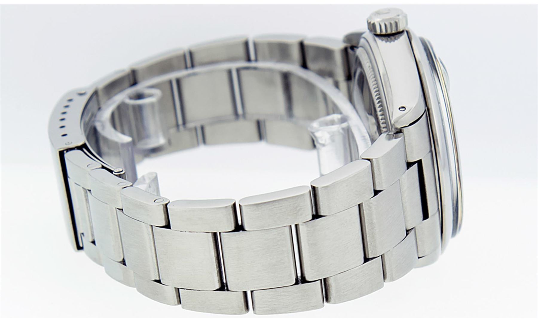 One Men's Rolex Quickset Stainless Steel Datejust Polished Bright with Satin Finish, Serviced & Electronically Tested, Rolex Stainless Steel Case: 36mm, Rolex Stainless Steel Crown, Rolex Bezel: Stainless Steel Smooth Bezel. Crystal: Sapphire With Magnified Date Window. Custom Hands: New Luminescent Hands. Rolex Movement: Automatic Winding Movement Caliber 3135. Custom Dial: Silver Roman With Square Track and Lumi Dot. Date Window: 3 O'Clock Position Date Display, Quickset, Model: Quickset Datejust. Condition: G-6 Extra Fine. Rolex Bracelet: Stainless Steel Oyster Band. Bright Polish & Satin Finish. 7.0 Inch Length, Adjustable. Standard Clasp, With Rolex Logo. This Pre Owned Watch Has Been Serviced Time Tested And Is In Excellent Condition It Is Free Of All Scratches And Dents.