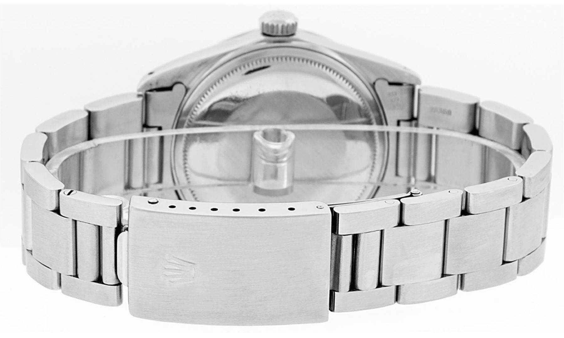 One Men's Rolex Quickset Stainless Steel Datejust Polished Bright with Satin Finish, Serviced & Electronically Tested, Rolex Stainless Steel Case: 36mm, Rolex Stainless Steel Crown, Rolex Bezel: Stainless Steel Smooth Bezel. Crystal: Sapphire With Magnified Date Window. Custom Hands: New Luminescent Hands. Rolex Movement: Automatic Winding Movement Caliber 3135. Custom Dial: Silver Roman With Square Track and Lumi Dot. Date Window: 3 O'Clock Position Date Display, Quickset, Model: Quickset Datejust. Condition: G-6 Extra Fine. Rolex Bracelet: Stainless Steel Oyster Band. Bright Polish & Satin Finish. 7.0 Inch Length, Adjustable. Standard Clasp, With Rolex Logo. This Pre Owned Watch Has Been Serviced Time Tested And Is In Excellent Condition It Is Free Of All Scratches And Dents.
