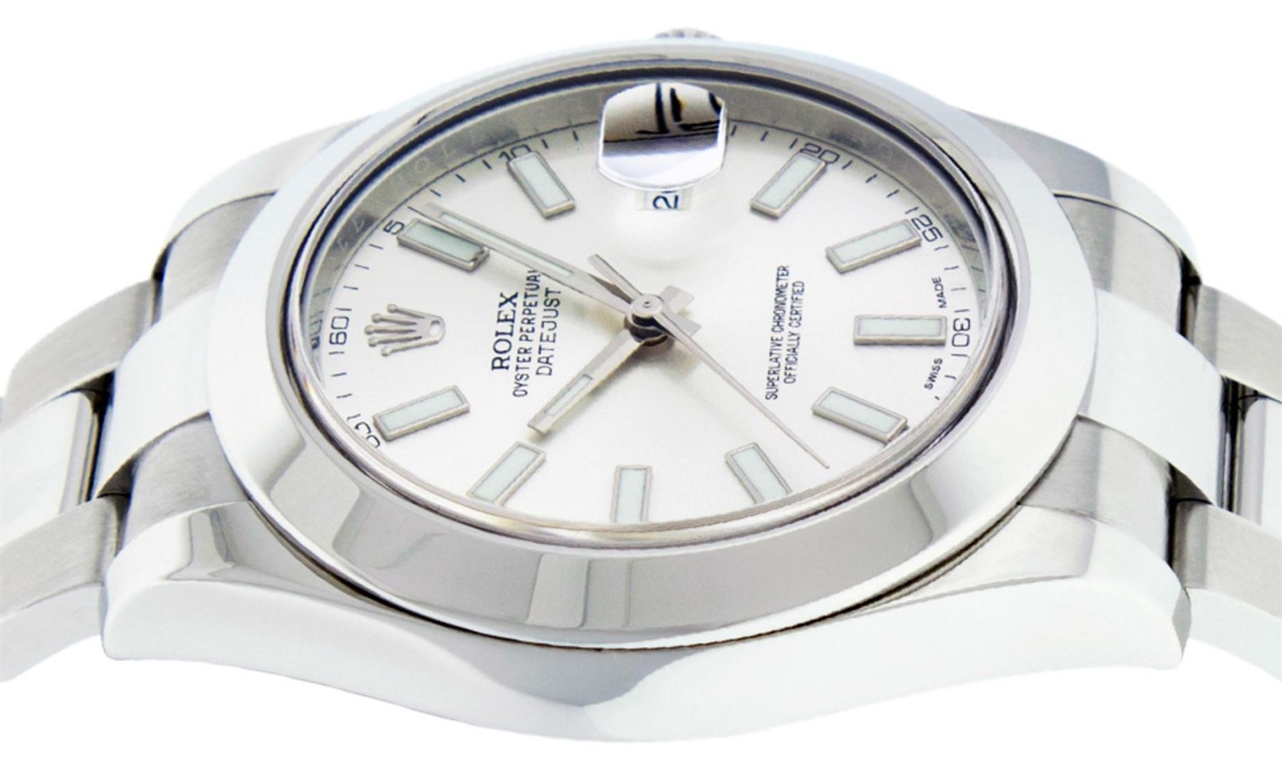 One Men's Rolex Datejust 2 41MM Polished, Serviced & Electronically Tested, Rolex Stainless Steel Case: 41mm, Stainless Steel Crown, Rolex Bezel: Stainless Steel Smooth Bezel, Crystal: Sapphire With Magnified Date Window. Hands: Luminescent Hands. Rolex Movement: Automatic Winding Movement 3136. Rolex Dial: White Index With Dash Track. Date Window: 3 O'Clock Position Date Display, Quickset, Model: Datejust 2. Condition: G-6 Extra Fine. Rolex Bracelet: Stainless Steel Oyster Band. Bright Polish & Satin Finish. 7.0 Inch Length, Adjustable. Standard Clasp, With Rolex Logo. This Pre Owned Watch Has Been Serviced Time Tested And Is In Excellent Condition It Is Free Of All Scratches And Dents.