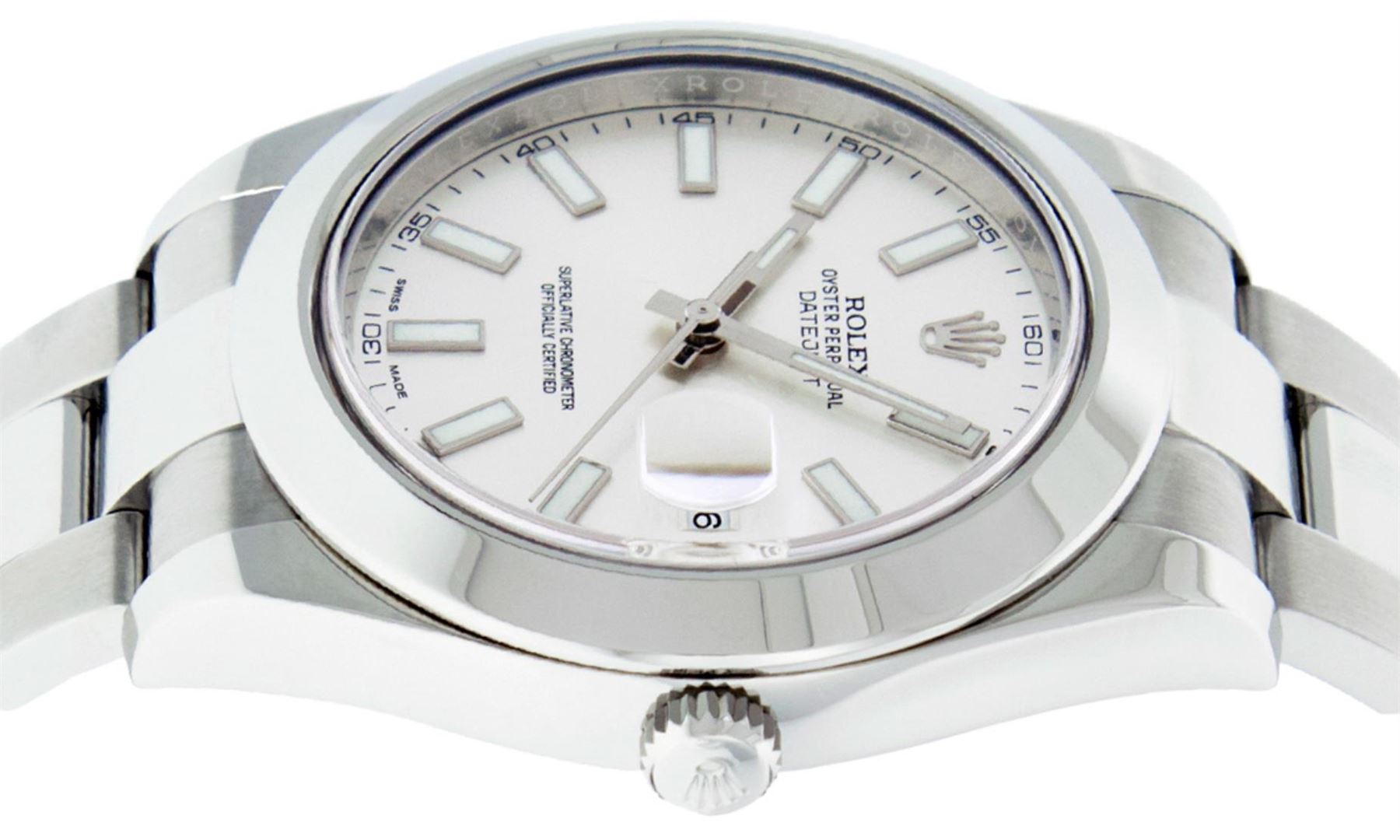 One Men's Rolex Datejust 2 41MM Polished, Serviced & Electronically Tested, Rolex Stainless Steel Case: 41mm, Stainless Steel Crown, Rolex Bezel: Stainless Steel Smooth Bezel, Crystal: Sapphire With Magnified Date Window. Hands: Luminescent Hands. Rolex Movement: Automatic Winding Movement 3136. Rolex Dial: White Index With Dash Track. Date Window: 3 O'Clock Position Date Display, Quickset, Model: Datejust 2. Condition: G-6 Extra Fine. Rolex Bracelet: Stainless Steel Oyster Band. Bright Polish & Satin Finish. 7.0 Inch Length, Adjustable. Standard Clasp, With Rolex Logo. This Pre Owned Watch Has Been Serviced Time Tested And Is In Excellent Condition It Is Free Of All Scratches And Dents.