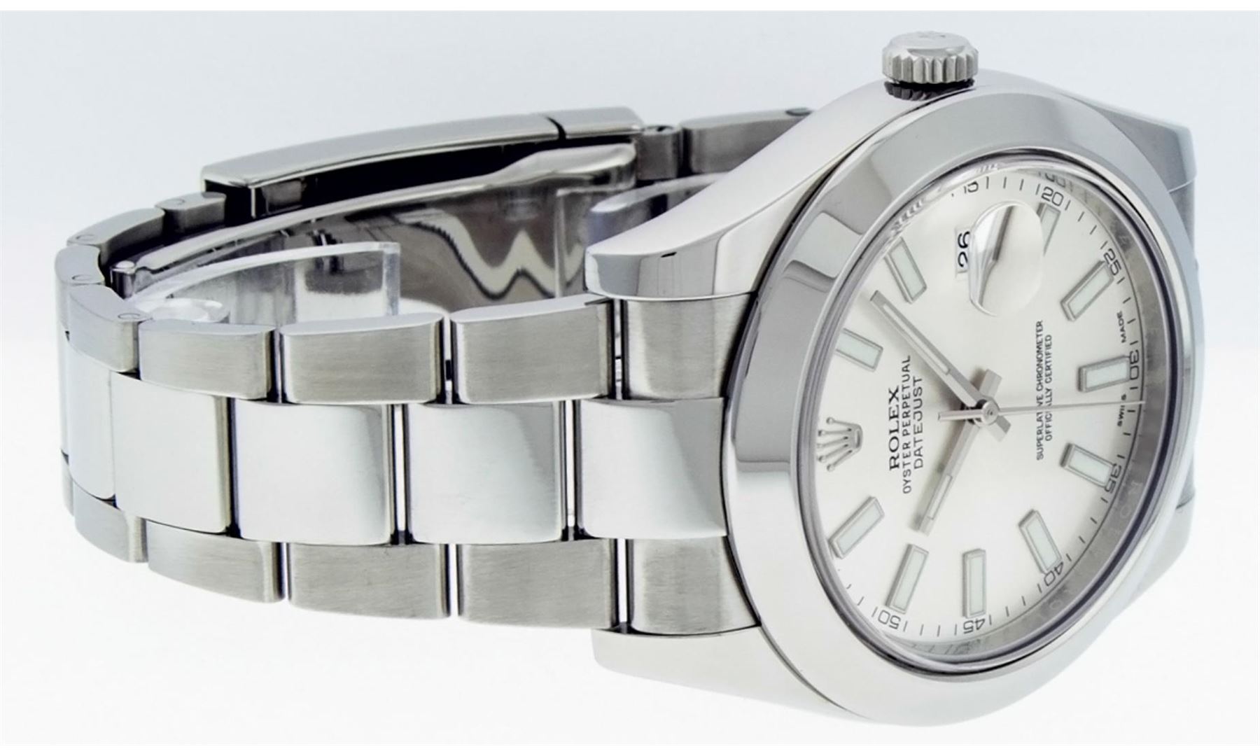 One Men's Rolex Datejust 2 41MM Polished, Serviced & Electronically Tested, Rolex Stainless Steel Case: 41mm, Stainless Steel Crown, Rolex Bezel: Stainless Steel Smooth Bezel, Crystal: Sapphire With Magnified Date Window. Hands: Luminescent Hands. Rolex Movement: Automatic Winding Movement 3136. Rolex Dial: White Index With Dash Track. Date Window: 3 O'Clock Position Date Display, Quickset, Model: Datejust 2. Condition: G-6 Extra Fine. Rolex Bracelet: Stainless Steel Oyster Band. Bright Polish & Satin Finish. 7.0 Inch Length, Adjustable. Standard Clasp, With Rolex Logo. This Pre Owned Watch Has Been Serviced Time Tested And Is In Excellent Condition It Is Free Of All Scratches And Dents.