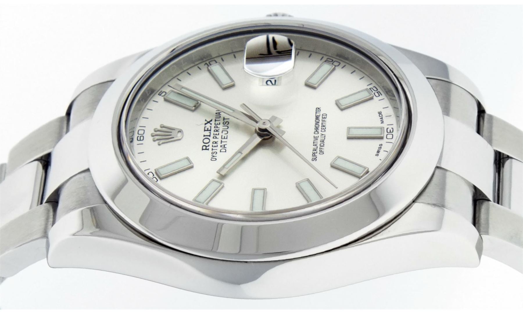 One Men's Rolex Datejust 2 41MM Polished, Serviced & Electronically Tested, Rolex Stainless Steel Case: 41mm, Stainless Steel Crown, Rolex Bezel: Stainless Steel Smooth Bezel, Crystal: Sapphire With Magnified Date Window. Hands: Luminescent Hands. Rolex Movement: Automatic Winding Movement 3136. Rolex Dial: White Index With Dash Track. Date Window: 3 O'Clock Position Date Display, Quickset, Model: Datejust 2. Condition: G-6 Extra Fine. Rolex Bracelet: Stainless Steel Oyster Band. Bright Polish & Satin Finish. 7.0 Inch Length, Adjustable. Standard Clasp, With Rolex Logo. This Pre Owned Watch Has Been Serviced Time Tested And Is In Excellent Condition It Is Free Of All Scratches And Dents.