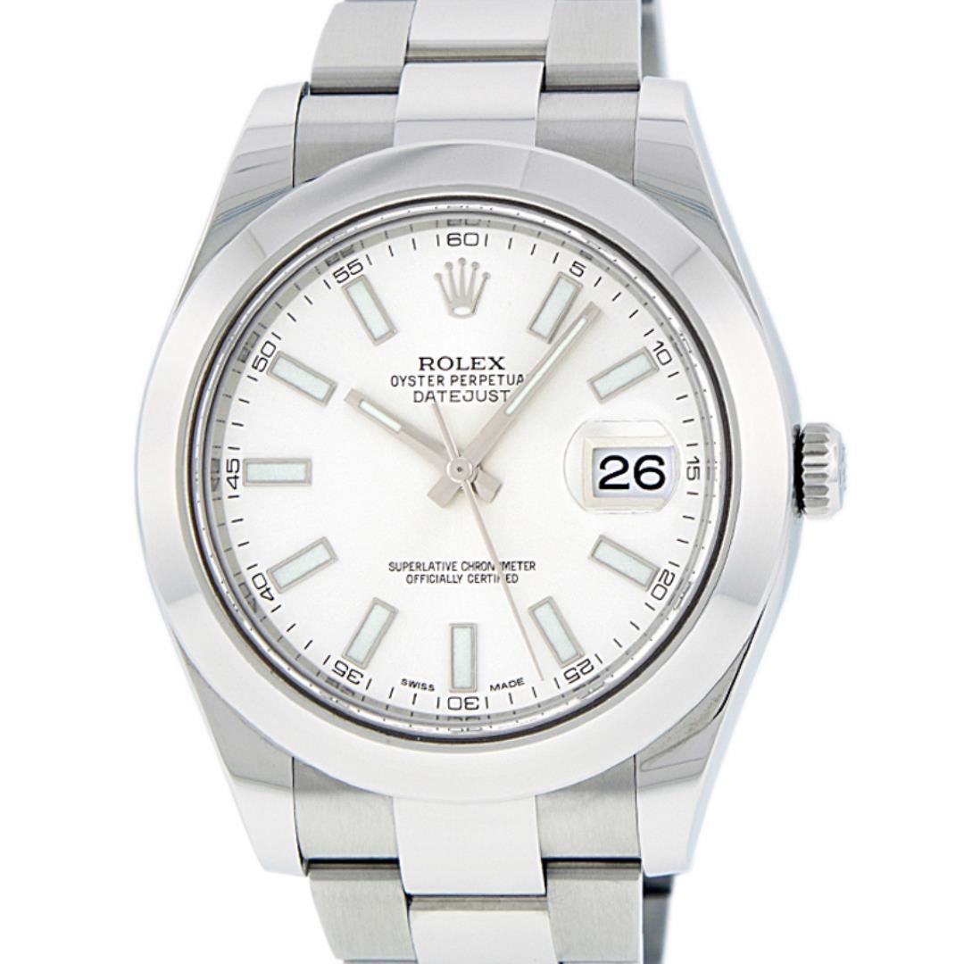 One Men's Rolex Datejust 2 41MM Polished, Serviced & Electronically Tested, Rolex Stainless Steel Case: 41mm, Stainless Steel Crown, Rolex Bezel: Stainless Steel Smooth Bezel, Crystal: Sapphire With Magnified Date Window. Hands: Luminescent Hands. Rolex Movement: Automatic Winding Movement 3136. Rolex Dial: White Index With Dash Track. Date Window: 3 O'Clock Position Date Display, Quickset, Model: Datejust 2. Condition: G-6 Extra Fine. Rolex Bracelet: Stainless Steel Oyster Band. Bright Polish & Satin Finish. 7.0 Inch Length, Adjustable. Standard Clasp, With Rolex Logo. This Pre Owned Watch Has Been Serviced Time Tested And Is In Excellent Condition It Is Free Of All Scratches And Dents.