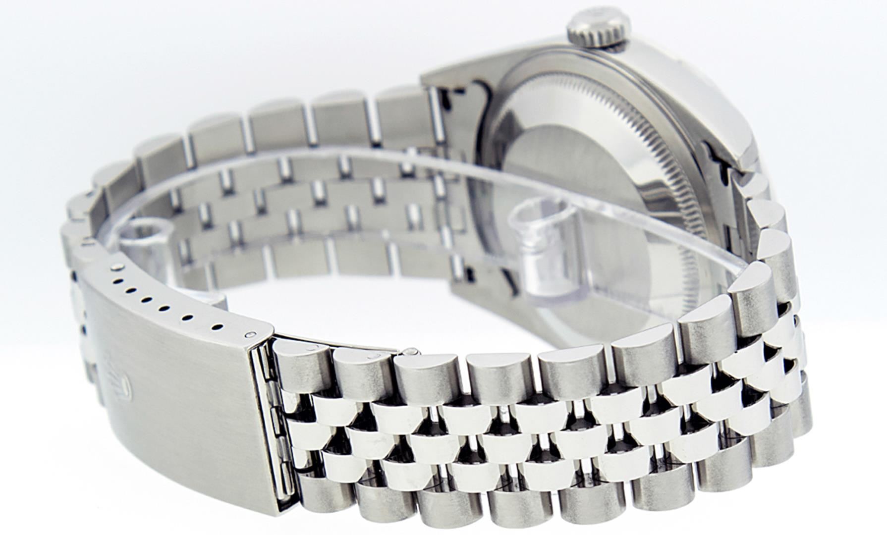 One Men's Rolex Pre Owned Quickset Stainless Steel Datejust Polished Bright with Satin Finish, Serviced & Electronically Tested, Rolex Stainless Steel Case: 36mm, Rolex Stainless Steel Crown, Rolex Bezel: Stainless Steel Smooth Bezel. Crystal: Sapphire With Magnified Date Window. Rolex Movement: Automatic Winding Movement Caliber 3135. Rolex Dial: White Roman With Square Track and Lumi Dot. Date Window: 3 O'Clock Position Date Display, Quickset, Model: Quickset Datejust. Condition: G-6 Extra Fine. Rolex Bracelet: Stainless Steel Jubilee Band. Bright Polish & Satin Finish. 7.0 Inch Length, Adjustable. Standard Clasp, With Rolex Logo. This Pre Owned Watch Has Been Serviced Time Tested And Is In Excellent Condition It Is Free Of All Scratches And Dents.