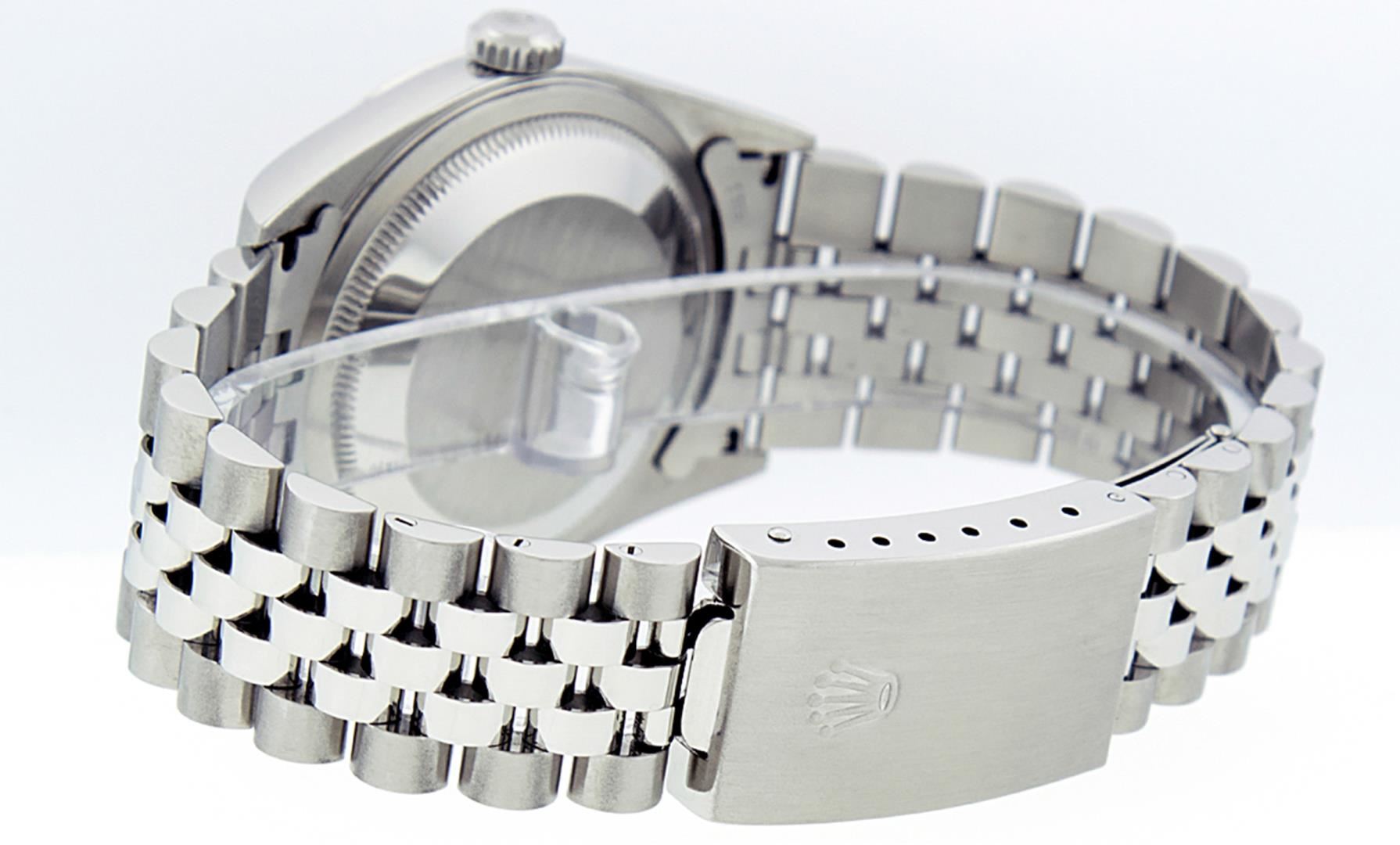 One Men's Rolex Pre Owned Quickset Stainless Steel Datejust Polished Bright with Satin Finish, Serviced & Electronically Tested, Rolex Stainless Steel Case: 36mm, Rolex Stainless Steel Crown, Rolex Bezel: Stainless Steel Smooth Bezel. Crystal: Sapphire With Magnified Date Window. Rolex Movement: Automatic Winding Movement Caliber 3135. Rolex Dial: White Roman With Square Track and Lumi Dot. Date Window: 3 O'Clock Position Date Display, Quickset, Model: Quickset Datejust. Condition: G-6 Extra Fine. Rolex Bracelet: Stainless Steel Jubilee Band. Bright Polish & Satin Finish. 7.0 Inch Length, Adjustable. Standard Clasp, With Rolex Logo. This Pre Owned Watch Has Been Serviced Time Tested And Is In Excellent Condition It Is Free Of All Scratches And Dents.
