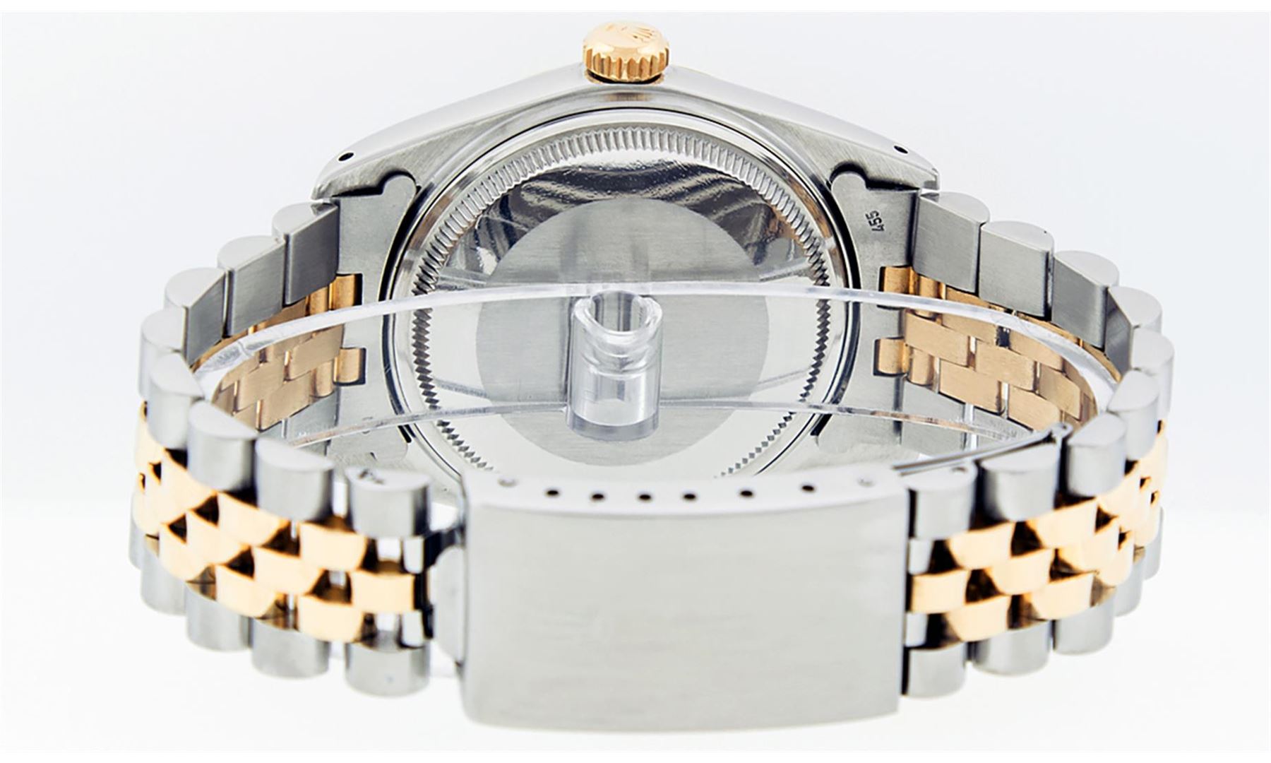 One Men's 14K Yellow Gold Two Tone Rolex Datejust Polished, Serviced & Electronically Tested, 14K Yellow Gold & Stainless Steel Case: 36mm,14K Yellow Gold Crown, Bezel: 14K Yellow Gold Fluted Bezel. Custom Crystal: New Acrylic Cyclops Lens. Custom Hands: New Luminescent Hands. Movement: Automatic Winding Movement Caliber 3035. Dial: Champagne Dial With Index Hour Markers and Small Track. Date Window: 3 O'Clock Position Date Display, Quickset, Model: 16013 Condition: G-6 Extra Fine. Bracelet: Two Tone 14K Yellow Gold & Stainless Steel Jubilee. Bright Polish. 7.0 Inch Length, Adjustable. Standard Clasp, With Rolex Logo. This Watch Has Been Serviced Time Tested And Is In Excellent Condition It Is Free Of All Scratches And Dents.