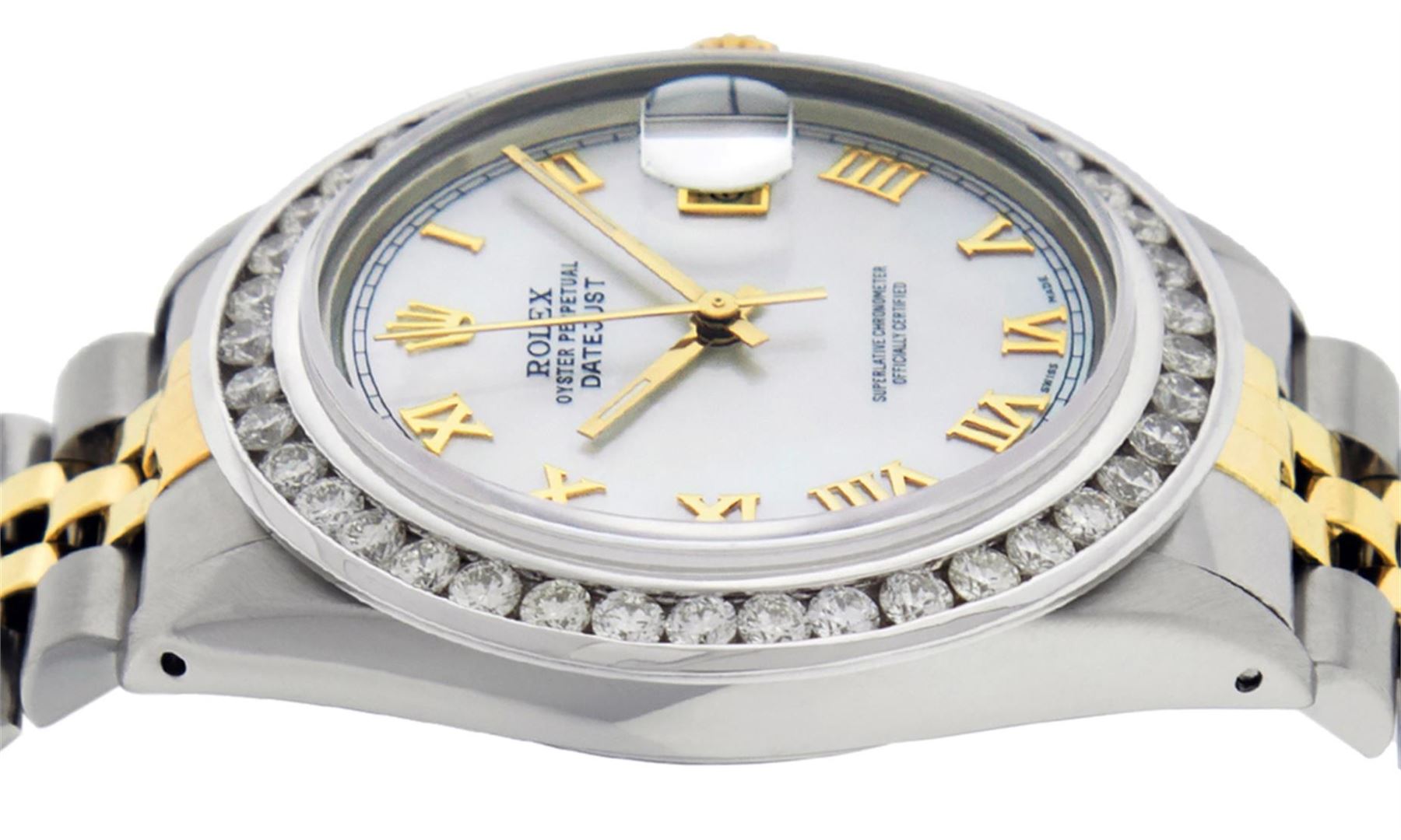 Rolex Men's Two Tone 14K MOP Roman 3 ctw Channel Set Diamond Datejust Wristwatch