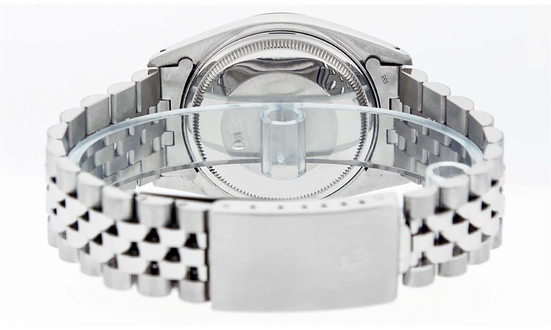 One Mens Pre Owned Stainless Steel Rolex Datejust Polished Bright with Satin Finish, This Watch Has Been Serviced & Electronically Tested, Rolex Stainless Steel Case: 36mm, Rolex Stainless Steel Crown, Rolex Bezel: 14K White Gold Fluted Bezel. Custom Crys