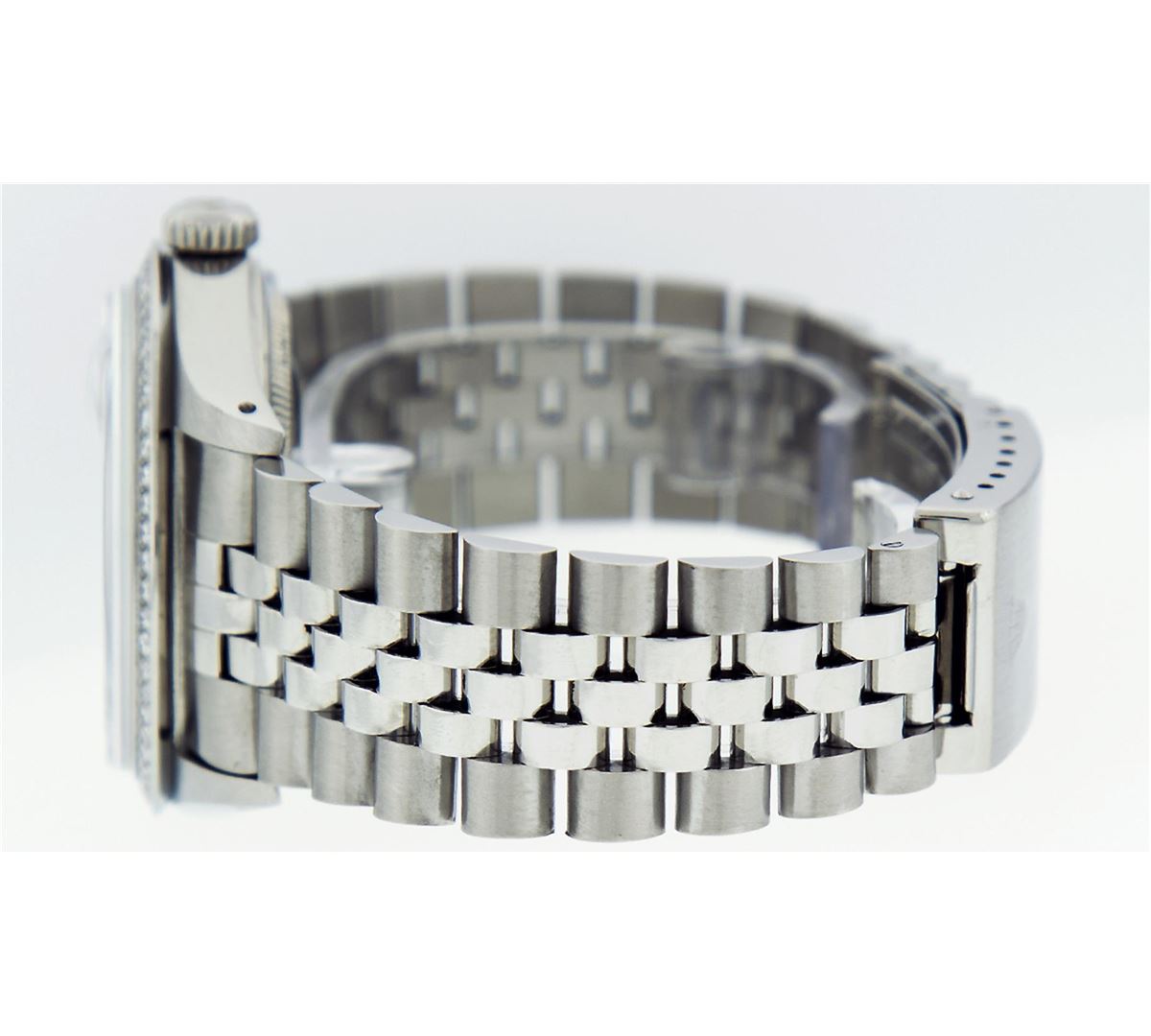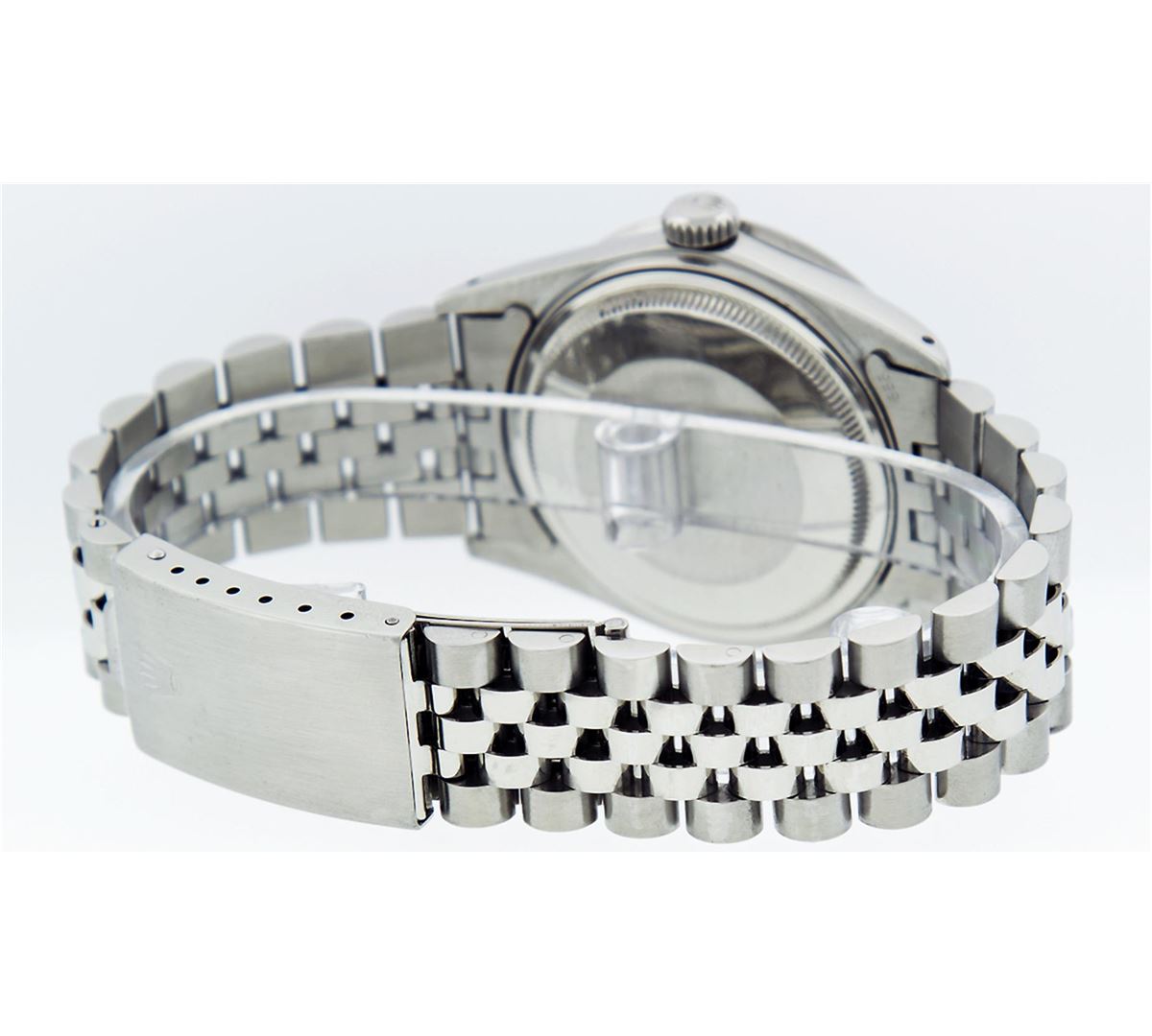 One Mens Rolex Datejust Polished Bright with Satin Finish, Serviced & Electronically Tested, Stainless Steel Case:36mm, Stainless Steel Crown, Custom Bezel: Stainless Steel Beadset Diamond Bezel, Diamond Count: 54 Diamonds Total Weight 1.00 Carat, Clarit