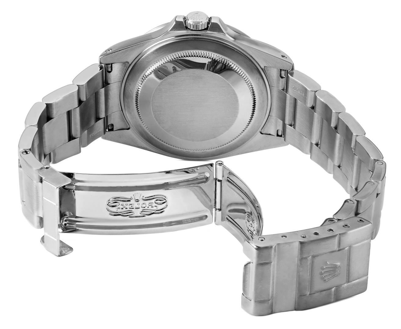 One Mens Pre Owned Stainless Steel Rolex Explorer II Polished, Serviced & Electronically Tested, Rolex Stainless Steel Case: 40mm, Rolex Stainless Steel Crown, Rolex Bezel: Stainless Steel Rolex Bezel. Crystal: Sapphire With Magnified Date Window. Rolex Movement: Automatic Winding Movement Caliber 3186. Rolex Dial: Black Explorer II Dial with Luminous Index Hour Markers And Dash Track. Date Window: 3 O'Clock Position Date Display, Model: Date Explorer 2, Quickset, Dial Time Watch, Condition: G-6 Extra Fine. Rolex Bracelet: Stainless Steel Oyster Band. Bright Polish & Satin Finish. 7.0 Inch Length, Adjustable. Fold Clasp, With Rolex Logo. This Watch Comes With A Rolex Box.
