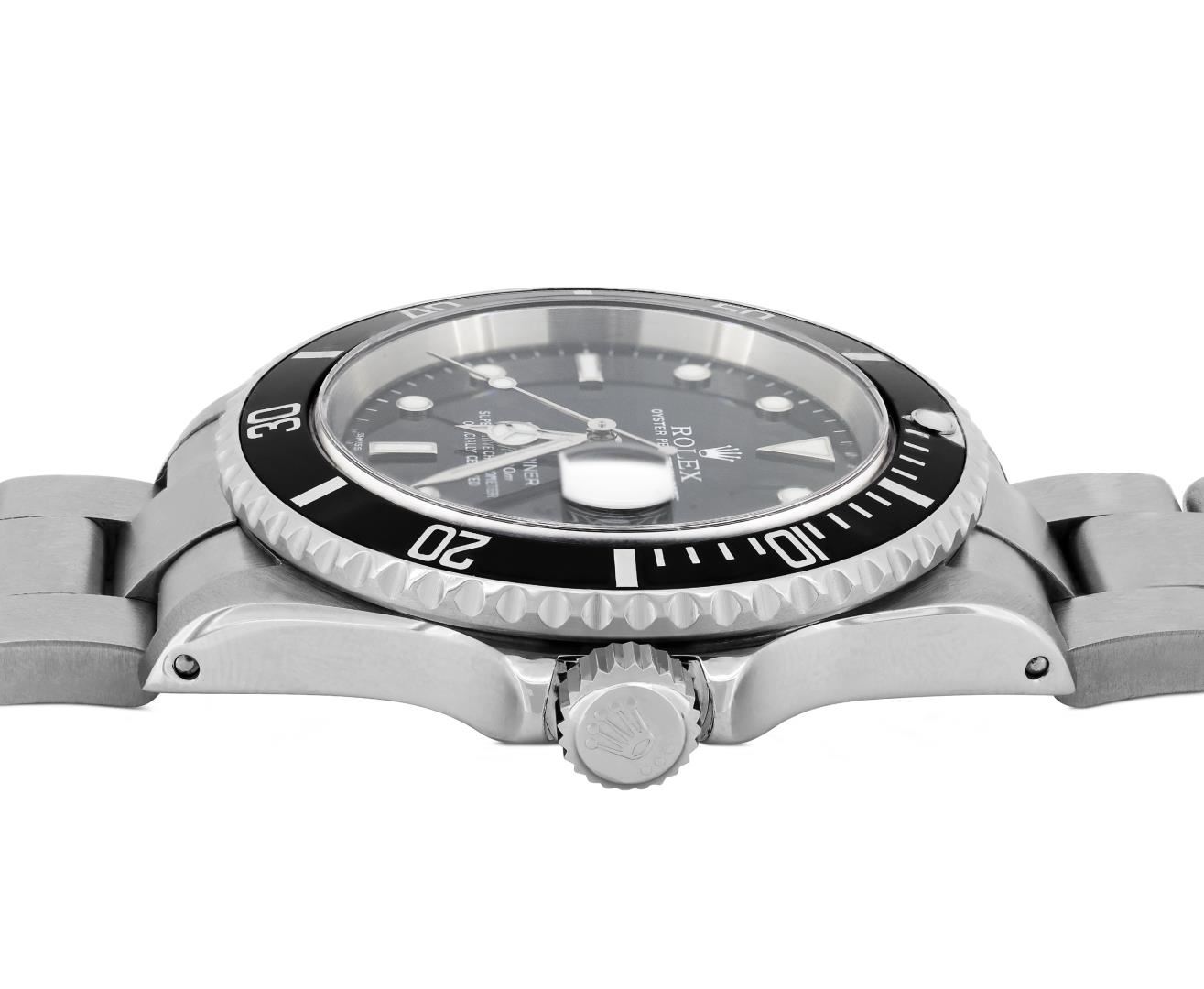 One Mens Pre Owned Stainless Steel Rolex Submariner With Date Polished, Serviced And Electronically Tested, Rolex Stainless Steel Case: 40mm, Rolex Stainless Steel Crown, Rolex Bezel: Stainless Steel Rotatable Bezel With Black Insert. Crystal: Sapphire With Magnified Date Window. Rolex Movement: Automatic Winding Movement Caliber 3135. Rolex Dial: Black Submariner Dial with Luminous Index Hour Markers And Dash Track. Date Window: 3 O'Clock Position Date Display, Model: Date Submariner, Quickset, Condition: G-6 Extra Fine. Rolex Bracelet: Stainless Steel Oyster Band. Bright Polish & Satin Finish. 7.0 Inch Length, Adjustable. Standard Clasp, With Rolex Logo. This Watch Comes With A Rolex Box.