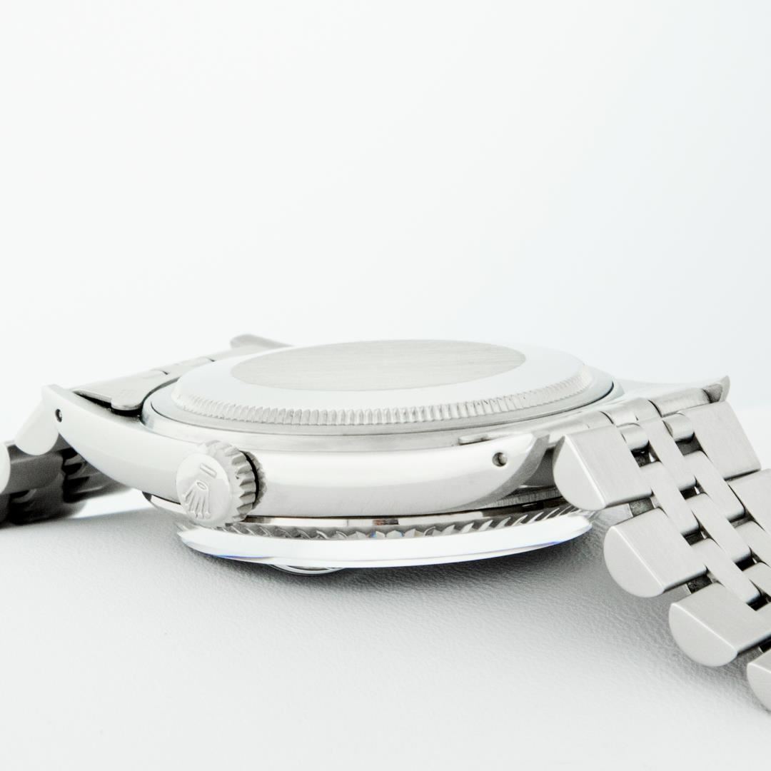 One Mens Pre Owned Rolex Datejust Polished, Serviced & Electronically Tested, Rolex Stainless Steel Case: 36mm, Rolex Stainless Steel Crown, Rolex Bezel: 14K White Gold Fluted Bezel. Custom Crystal: Acrylic With Magnified Date Window. Custom Hands: New Luminescent Hands. Rolex Movement: Automatic Winding Movement 3035. Custom Dial: Refinished To Black Dial With Index Hour Markers With Line Track. Date Window: 3 O'Clock Position Date Display, Quickset, Model: Datejust, Condition: G-6 Extra Fine. Rolex Bracelet: Stainless Steel Jubilee Band. Bright Polish & Satin Finish. 7.0 Inch Length, Adjustable. Standard Clasp, With Rolex Logo. This Watch Has Been Serviced And Polished It Is Free Of All Scratches And Dents.