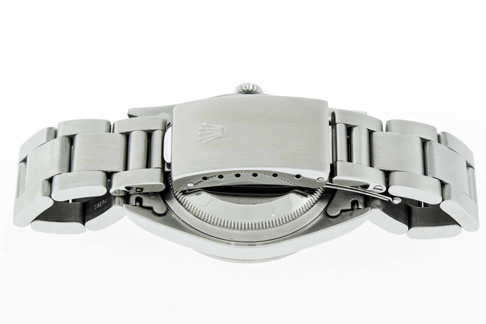One Mens Pre Owned Stainless Steel Rolex Datejust Polished Bright with Satin Finish, This Watch Has Been Serviced & Electronically Tested, Rolex Stainless Steel Case: 36mm, Rolex Stainless Steel Crown, Rolex Bezel: 18K White Gold Fluted Bezel. Custom Crystal: New Sapphire With Magnified Date Window. Custom Hands: New Luminescent Hands. Rolex Movement: Automatic Winding Movement Caliber 3135. Custom Dial: Gray Roman With Square Track. Date Window: 3 O'Clock Position Date Display, Quickset, Model: Sapphire Datejust, Condition: G-6 Extra Fine. Rolex Bracelet: Stainless Steel Oyster Band. Bright Polish & Satin Finish. 7.0 Inch Length, Adjustable. Standard Clasp, With Rolex Logo. This Watch Has Been Serviced Time Tested And Is In Excellent Condition It Is Free Of All Scratches And Dents. This Watch Comes With Rolex Box, Booklets, & Wallet.