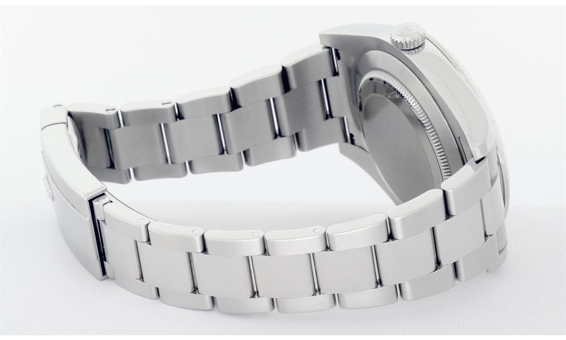 One Mens Pre Owned Rolex Datejust 2 41MM Polished, Serviced & Electronically Tested, Rolex Stainless Steel Case: 41mm, Stainless Steel Crown, Rolex Bezel: 18K White Gold Fluted Bezel, Crystal: Sapphire With Magnified Date Window. Hands: Solid Hands. Rolex Movement: Automatic Winding Movement 3136. Rolex Dial: Rhodium Diamond Dial With Square Roman Track, Diamond Count: 10 Diamonds On Dial, Clarity: VS. Date Window: 3 O'Clock Position Date Display, Quickset, Model: Datejust 2. Condition: G-6 Extra Fine. Rolex Bracelet: Stainless Steel Oyster Band. Bright Polish & Satin Finish. 7.0 Inch Length, Adjustable. Standard Clasp, With Rolex Logo. This Watch Has Been Serviced Time Tested And Is In Excellent Condition It Is Free Of All Scratches And Dents.
