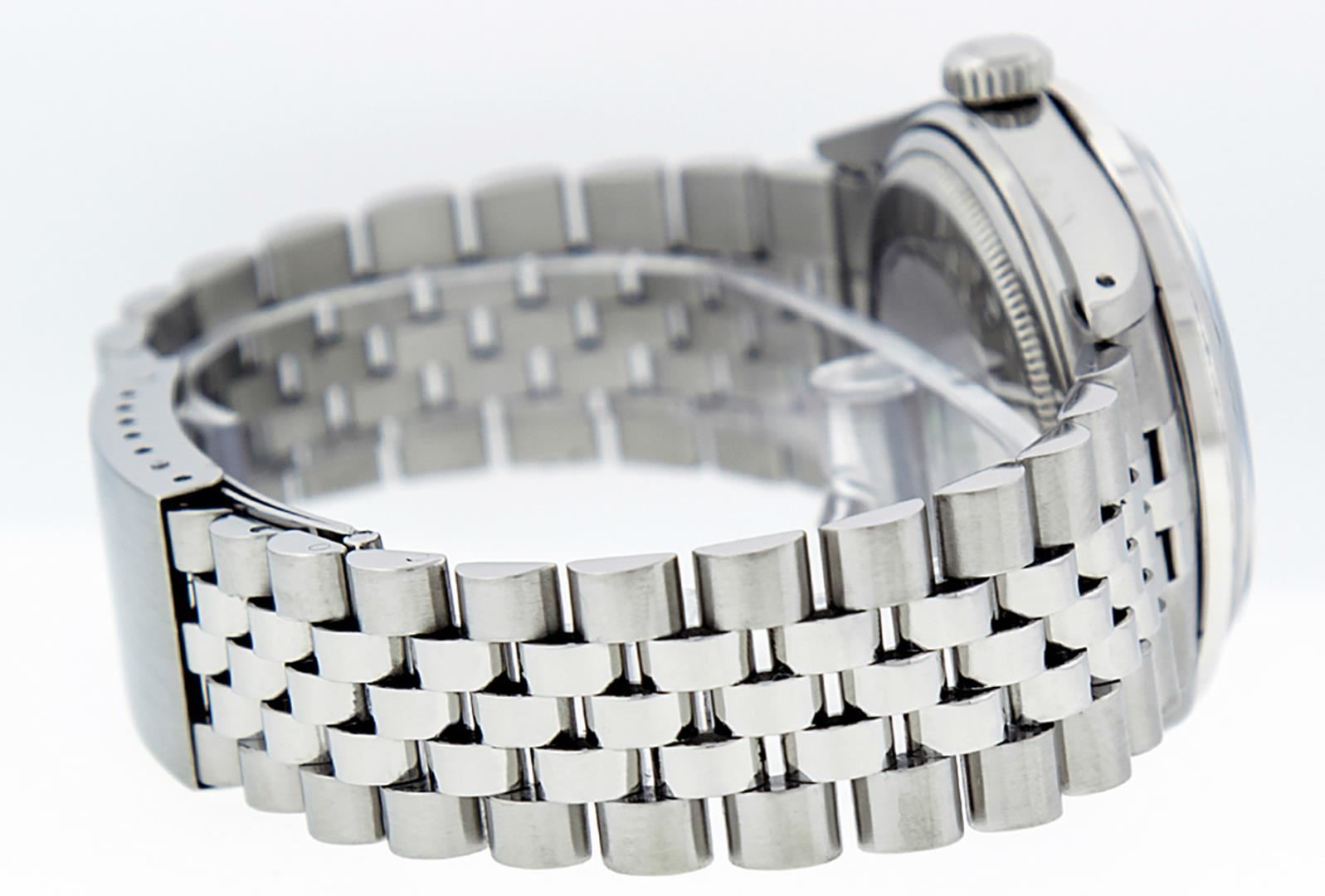 One Mens Pre Owned Rolex Stainless Steel Rolex Datejust Polished, Serviced & Electronically Tested, Rolex Stainless Steel Case: 36mm, Rolex Stainless Steel Crown, Rolex Bezel: 14K White Gold Fluted Bezel. Custom Crystal: New Acrylic With Magnified Date Window. Hands: Luminescent Hands. Rolex Movement: Automatic Winding Movement 3035. Rolex Dial: Silver Index With Roman Square Track. Date Window: 3 O'Clock Position Date Display, Quickset, Model: Datejust, Condition: G-6 Extra Fine. Rolex Bracelet: Stainless Steel Jubilee Band. Bright Polish & Satin Finish. 7.0 Inch Length, Adjustable. Standard Clasp, With Rolex Logo. This Watch Has Been Serviced Time Tested And Is In Excellent Condition It Is Free Of All Scratches And Dents.