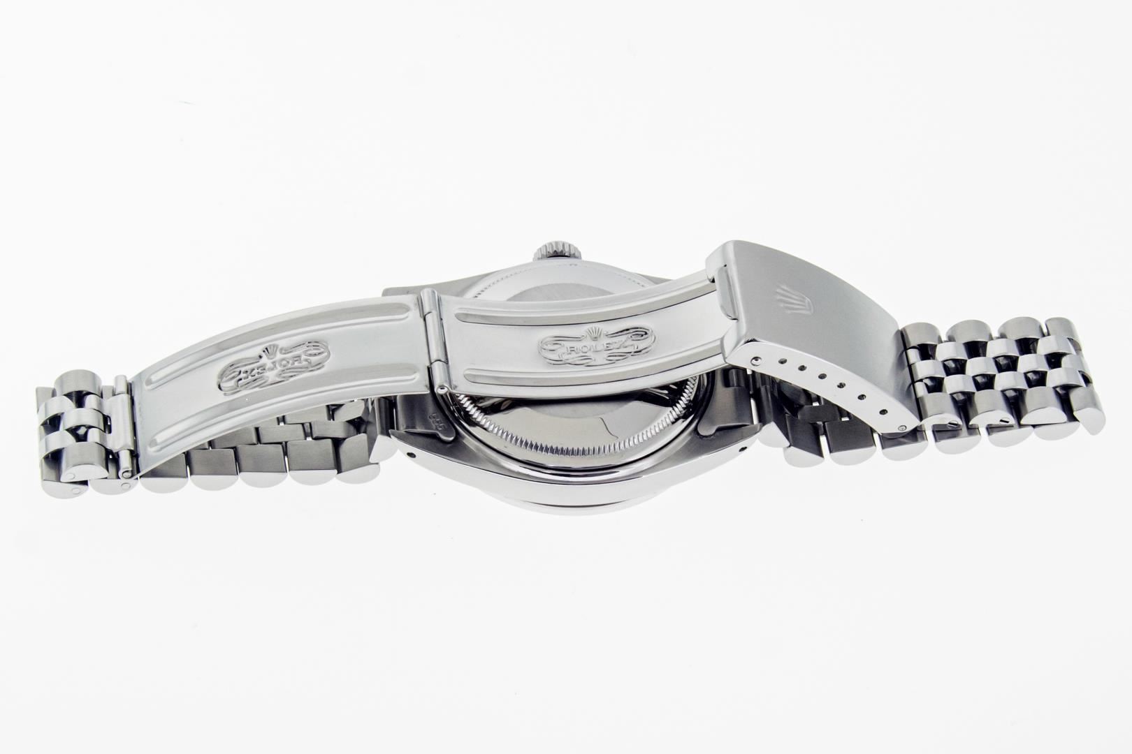 One Mens Pre Owned Rolex Datejust Polished Bright with Satin Finish, This Watch Has Been Serviced & Electronically Tested, Rolex Stainless Steel Case: 36mm, Rolex Stainless Steel Crown, Custom Bezel: New 18K White Gold Bead-set Diamond Bezel, Diamond Count: 44 Diamonds, Clarity: SI-VS, Color: G to H. Custom Crystal: New Sapphire With Date Window. Custom Hands: New Luminescent Hands. Rolex Movement: Automatic Winding Movement. Rolex Dial: Silver Index Dial With Dash Track And Lumi Dot. Date Window: 3 O'Clock Position Date Display, Quickset, Model: Datejust, Condition: G-6 Extra Fine. Rolex Bracelet: Stainless Steel Jubilee Band. Bracelet: 7.0 Inch Length, Adjustable. Standard Clasp, With Rolex Logo. This Watch Has Been Serviced Time Tested And Is In Excellent Condition It Is Free Of All Scratches And Dents.