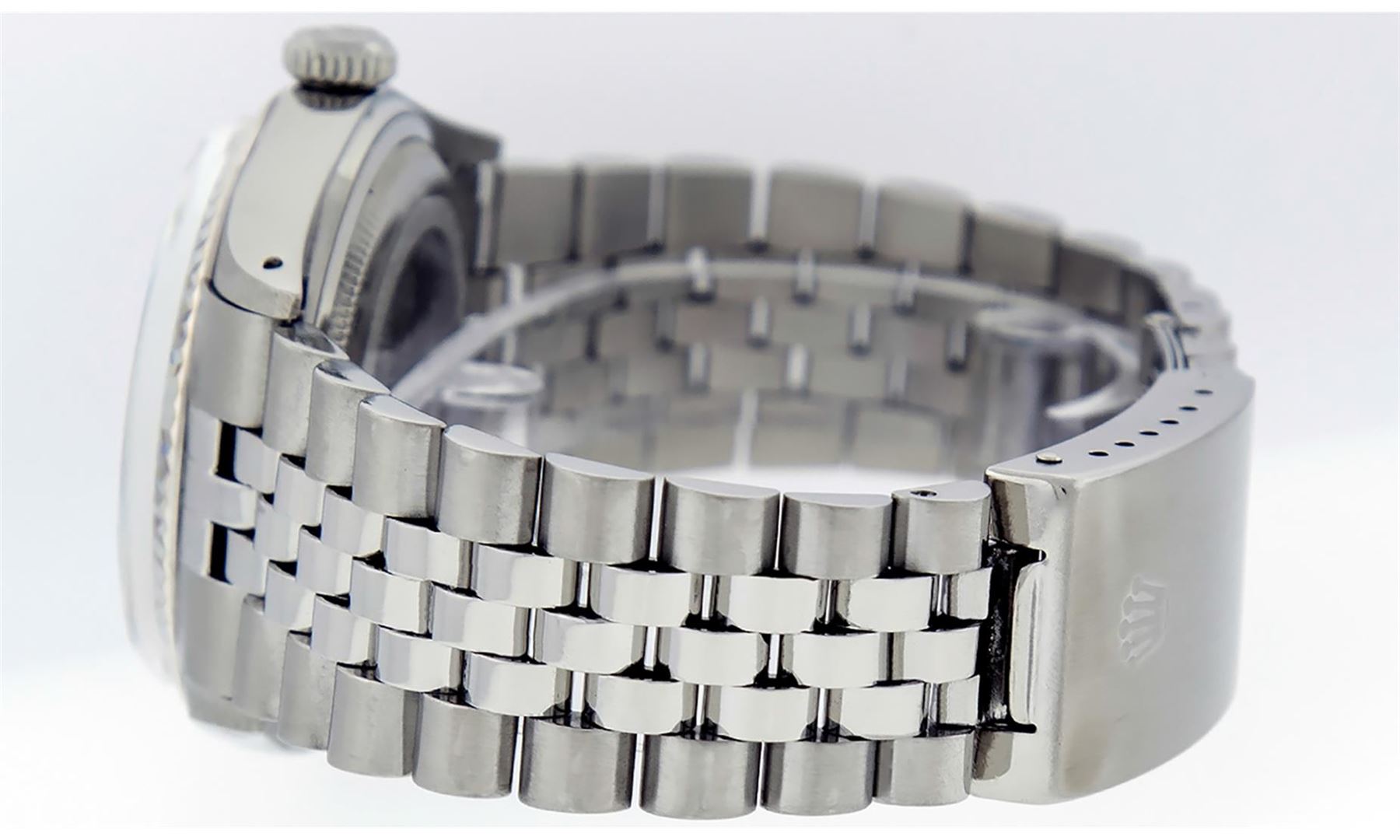One Mens Pre Owned Stainless Steel Rolex Datejust Polished, Serviced & Electronically Tested, Rolex Stainless Steel Case: 36mm, Rolex Stainless Steel Crown, Rolex Bezel: 14K White Gold Fluted Bezel. Custom Crystal: New Acrylic Cyclops Lens. Hands: Lumines