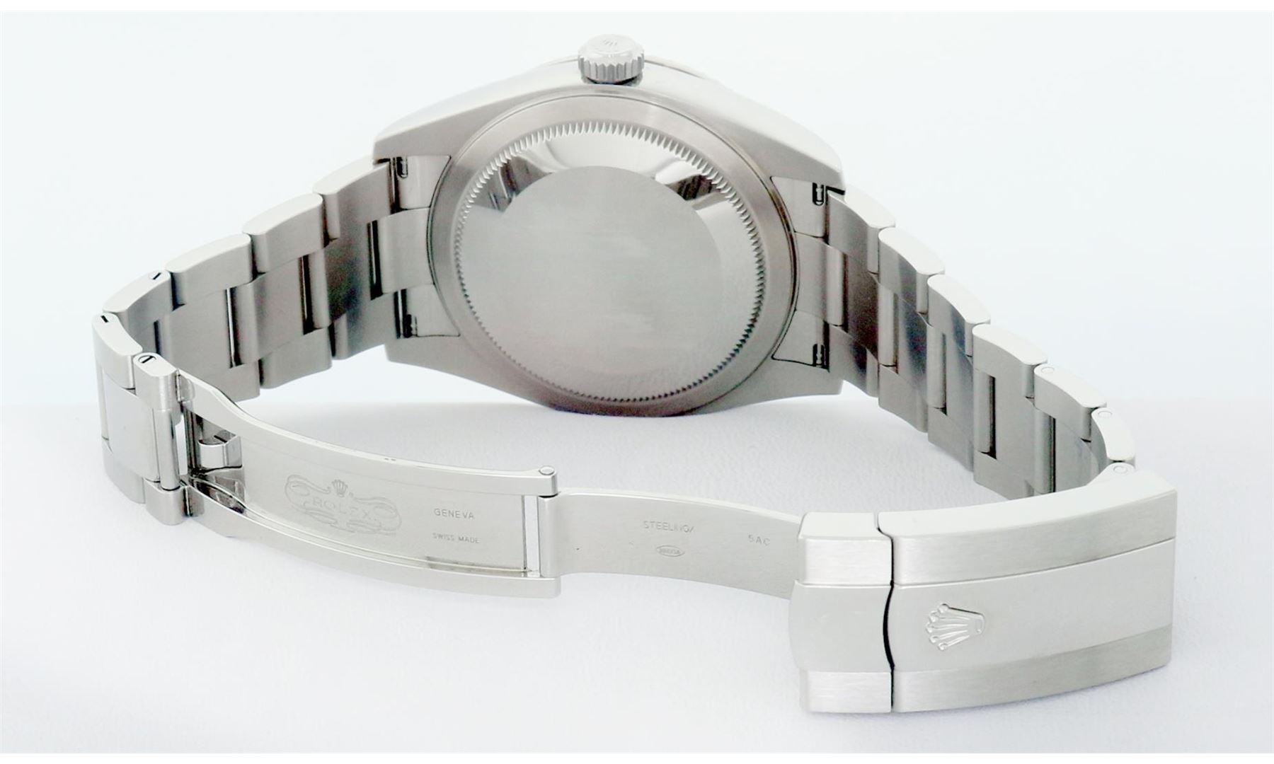 One Mens Pre Owned Stainless Steel Rolex Sky Dweller With Date Polished, Serviced & Electronically Tested, Rolex Stainless Steel Case: 42mm, Rolex Stainless Steel Crown, Rolex Bezel: 18K White Gold Rotatable Fluted Bezel. Rolex Crystal: Sapphire With Magnified Date Window. Rolex Movement: Automatic Winding Movement Caliber 9001. Rolex Dial: Rolex White Sky Dweller Dial with Luminous Index Hour Markers. Date Window: 3 O'Clock Position Date Display, Model: Sky Dweller, Quickset, Month Calendar Feature, Dual Time. Condition: G-6 Extra Fine. Rolex Bracelet: Stainless Steel Oyster Band. Bright Polish & Satin Finish. 7.25 Inch Length, Adjustable. Standard Clasp, With Rolex Logo. This Watch Has Been Serviced Time Tested And Is In Excellent Condition It Is Free Of All Scratches And Dents. This Watch Comes With A Rolex Box, Rolex Papers, And Rolex Booklet.