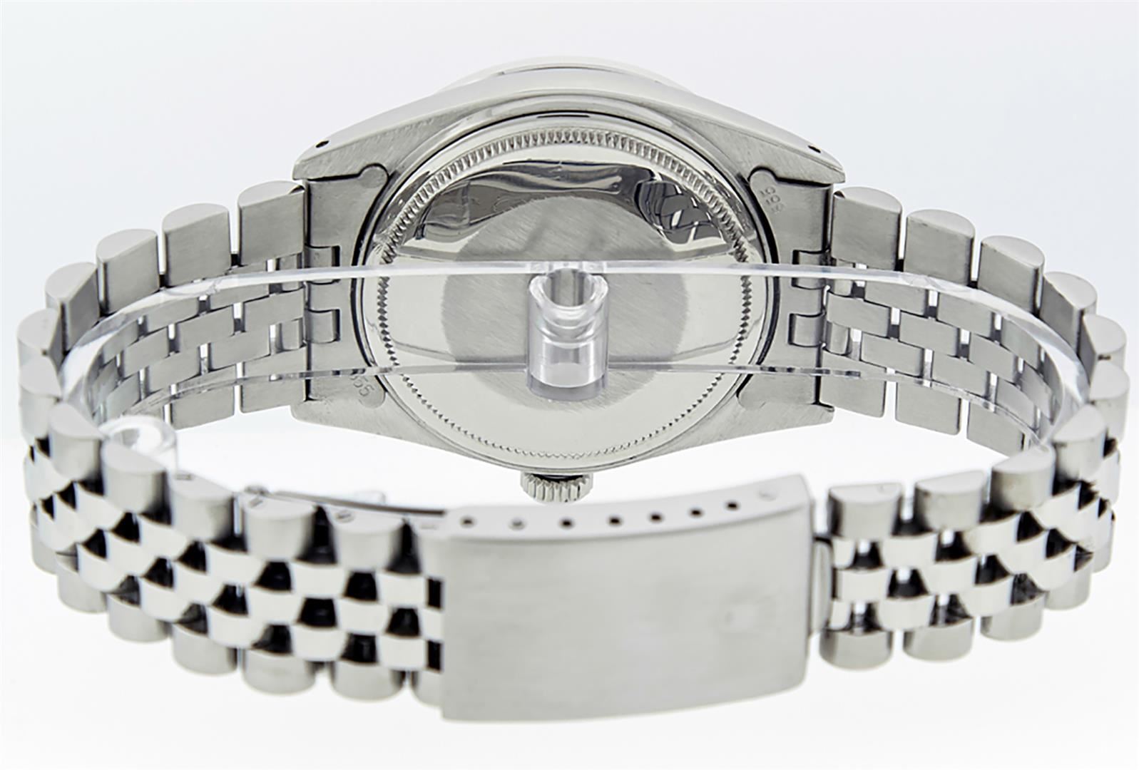 One Mens Pre Owned Stainless Steel Rolex Datejust Polished Bright with Satin Finish, Serviced & Electronically Tested, Rolex Stainless Steel Case: 36mm, Rolex Stainless Steel Crown, Rolex Bezel: 14K White Gold Fluted Bezel. Custom Crystal: New Acrylic Cyc
