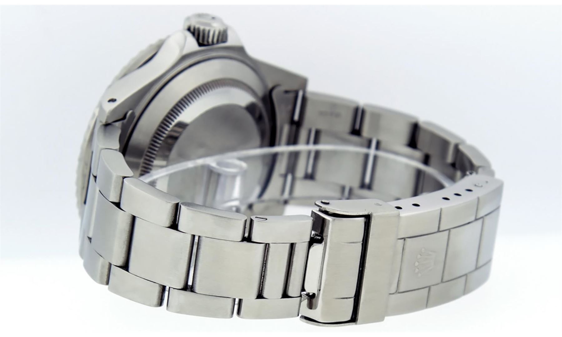 One Mens Pre Owned Rolex Stainless Steel Submariner With Date Polished, Serviced & Electronically Tested, Rolex Stainless Steel Case: 40mm, Rolex Stainless Steel Crown, Rolex Bezel: Stainless Steel Rotatable Bezel With Black Insert. Crystal: Sapphire With Magnified Date Window. Rolex Movement: Automatic Winding Movement Caliber 3135. Rolex Dial: Black Submariner Dial, Hands: Submariner Hands. Date Window: 3 O'Clock Position Date Display, Model: Submariner, Quickset, Condition: G-6 Extra Fine. Rolex Bracelet: Stainless Steel Oyster Band. Bright Polish & Satin Finish. 7.0 Inch Length, Adjustable. Standard Clasp, With Rolex Logo.