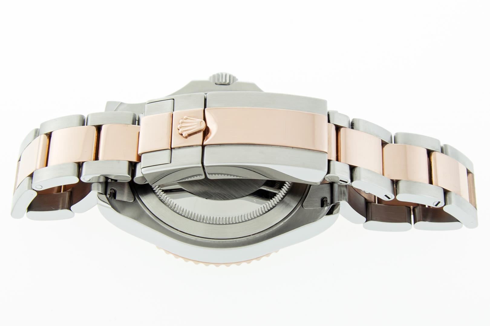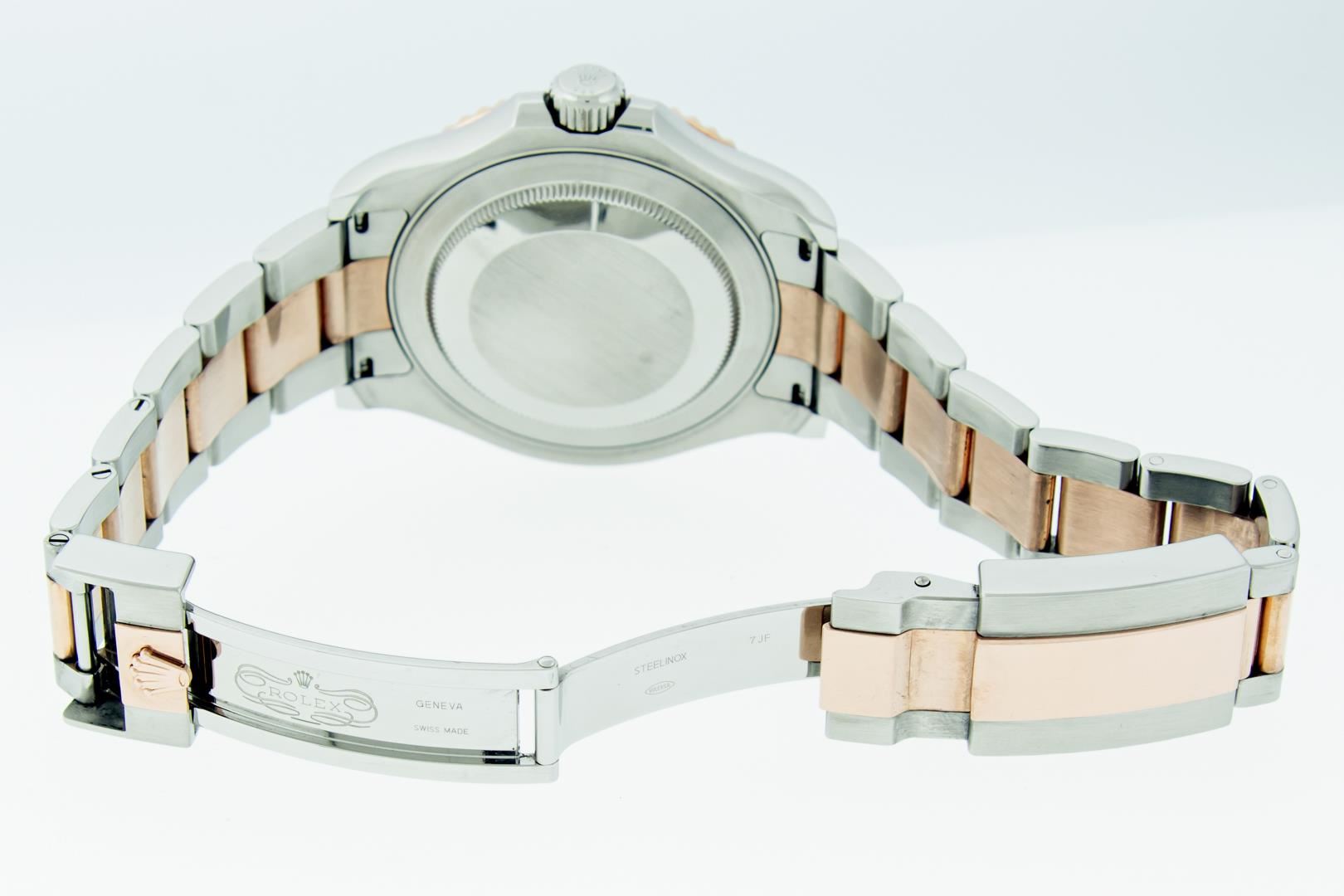 One Mens Pre Owned Rolex 18K Rose Gold And Stainless Steel Yacht-Master 40MM Polished And Serviced, This Watch Has Been Serviced & Electronically Tested, Rolex Stainless Steel And 18K Rose Gold Case: 40mm, Rolex 18K Rose Gold Crown with Rolex Logo, Rolex Bezel: 18K Rose Gold Rotatable Time-Lapse Bezel. Crystal: Sapphire With Magnified Date Window. Hands: Luminescent Hands. Rolex Movement: Automatic Winding Movement Caliber 3135. Rolex Dial: Black Dial With Luminous Hour Markers. Date Window: 3 O'Clock Position Date Display, Model: Yacht-Master 116621. Condition: Excellent. Rolex Bracelet: 18K Rose Gold And Stainless Steel Bracelet. Bright Polish & Satin Finish. 7.0 Inch Length, Adjustable. Flip Lock Clasp with Rolex Logo. This Watch Has Been Serviced Time Tested And Is In Excellent Condition It Is Free Of All Scratches And Dents. This Watch Comes With A Rolex Box And Booklets.