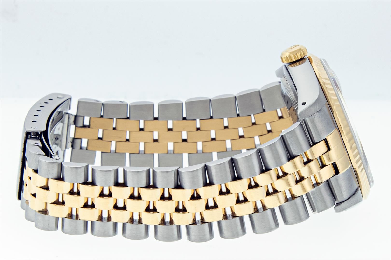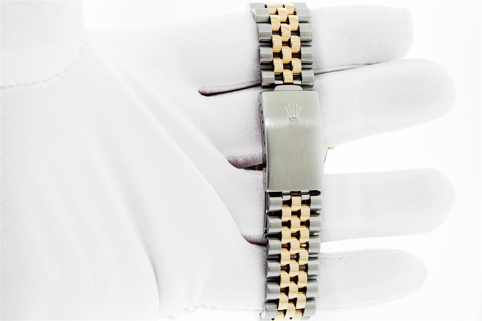 One Mens Pre Owned Yellow Gold Two Tone Rolex Datejust Polished, Serviced & Electronically Tested, Rolex Yellow Gold & Stainless Steel Case: 36mm, Rolex Yellow Gold Crown, Rolex Bezel: Yellow Gold Fluted Bezel. Custom Crystal: New Acrylic Cyclops Lens. Cu