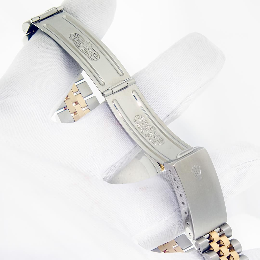 One Mens Pre Owned Two Tone Yellow Gold and Stainless Steel Rolex Datejust Polished, Serviced & Electronically Tested, Rolex Yellow Gold & Stainless Steel Case: 36mm, Rolex Yellow Gold Crown, Custom Bezel: New 18K Yellow Gold Beadset Diamond Bezel, Diamond Count: 44 Diamonds. Custom Crystal: New Sapphire With Magnified Date Window. Custom Hands: New Luminecent Hands. Rolex Movement: Automatic Winding Movement. Rolex Dial: Silver Index Dial With Dash Track. Date Window: 3 O'Clock Position Date Display, Quickset, Model: Condition: G-6 Extra Fine. Rolex Bracelet: Two Tone Yellow Gold & Stainless Steel Jubilee Band. Bright Polish. 7.0 Inch Length, Adjustable. Standard Clasp, With Rolex Logo. This Watch Has Been Serviced Time Tested And Is In Excellent Condition It Is Free Of All Scratches And Dents.
