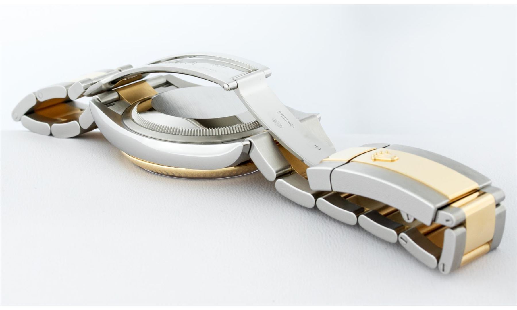 One Mens Rolex Two Tone 18K Yellow Gold And Stainless Steel Datejust, Polished Bright with Satin Finish, Serviced & Electronically Tested, Stainless Steel Case: 36mm, Rolex Yellow Gold Crown, Rolex Bezel: 18K Yellow Gold Fluted Bezel. Crystal: Sapphire With Cyclops Lens. Rolex Movement: Automatic Winding Movement Caliber 3235. Rolex Dial: "Wimbledon" Gray Roman Dial. Date Window: 3 O'Clock Position Date Display, Quickset, Model: Quickset Datejust 126233. Condition: G-6 Extra Fine. Rolex Bracelet: 18K Yellow Gold And Stainless Steel Oyster Band. Bright Polish & Satin Finish. 7.5 Inch Length, Adjustable. Standard Clasp, With Rolex Logo. This Pre Owned Watch Has Been Serviced Time Tested And Is In Excellent Condition It Is Free Of All Scratches And Dents. This Watch Comes With Box And Papers.