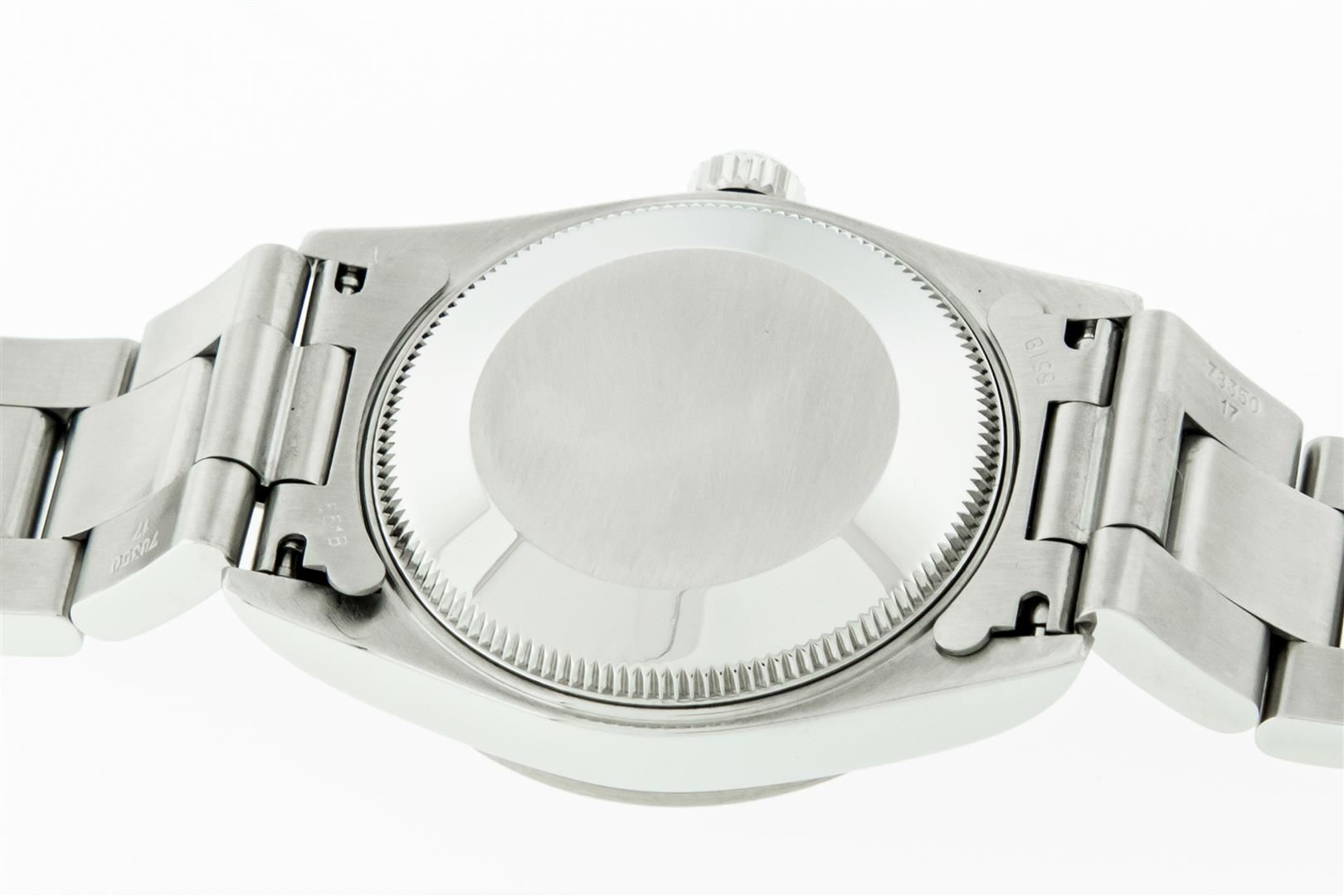One Women's Midsize Stainless Steel Rolex Datejust Polished, Serviced & Electronically Tested, Rolex Stainless Steel case: 31mm, Rolex Stainless Steel Crown, Bezel: 18K White Gold Fluted Bezel, Custom Crystal: New Sapphire with Magnified Date Window. Custom Hands: New Luminescent Hands. Rolex Movement: Automatic Winding Movement Caliber 2235. Custom Dial: Black with Index Hour Markers, Date Window: 3 O'Clock Position Date Display, Quickset, Model: Midsize Datejust. Condition: G-6 Extra Fine. Rolex Bracelet: Stainless Steel Oyster Band. Bright Polish. 6.0 Inch Length, Adjustable. Standard Clasp, with Rolex Logo. This Pre Owned Watch Has Been Serviced Time Tested And Is In Excellent Condition It Is Free Of All Scratches And Dents.